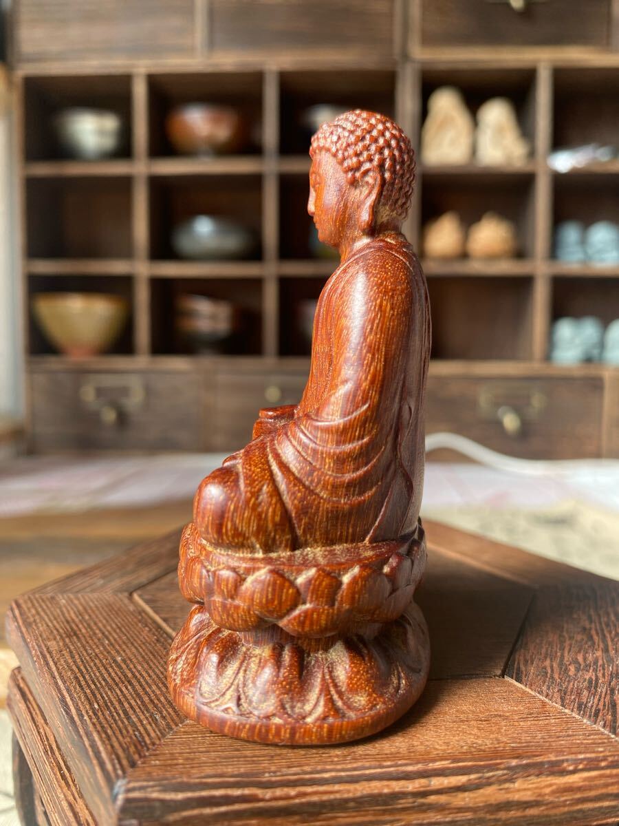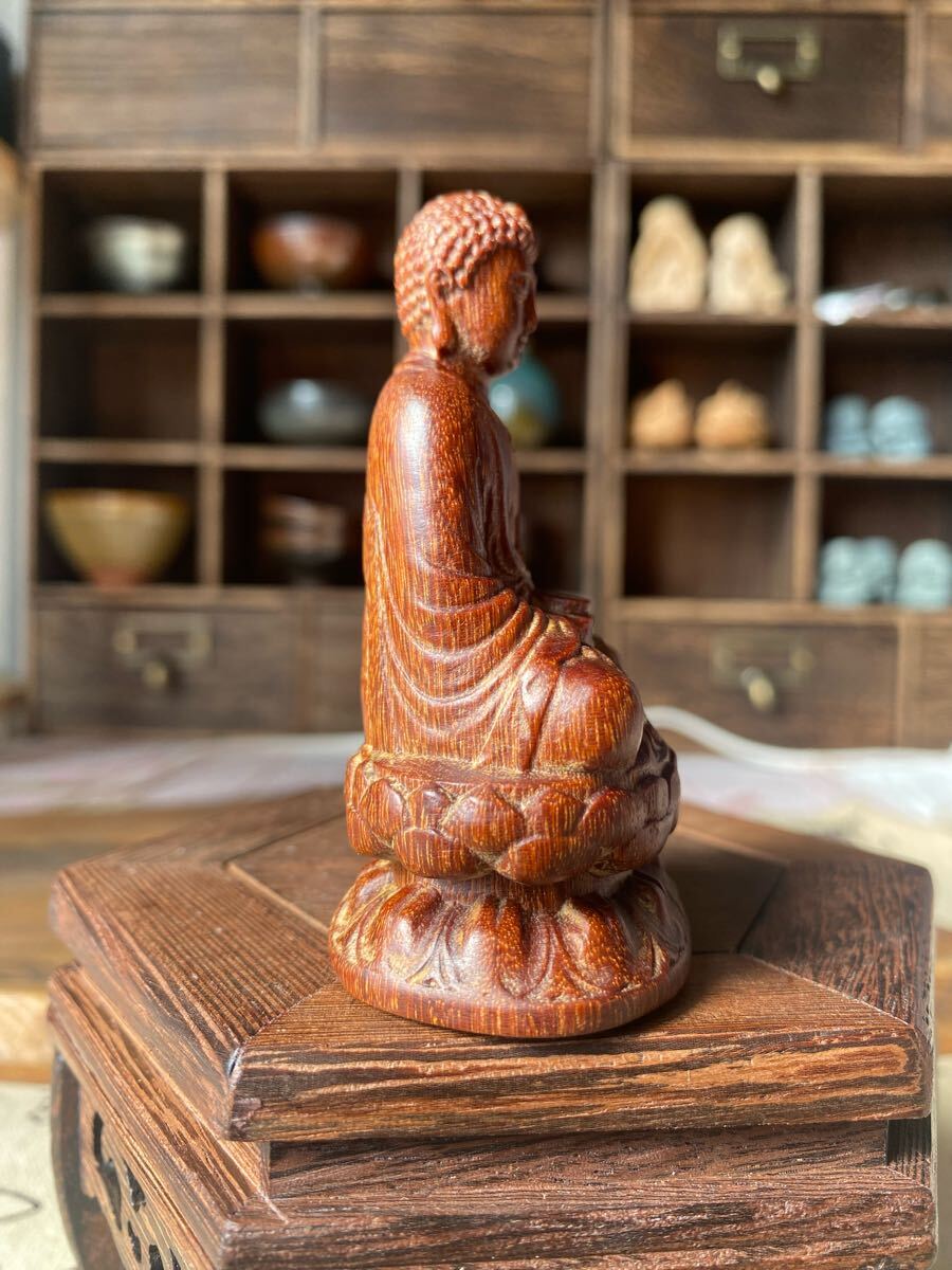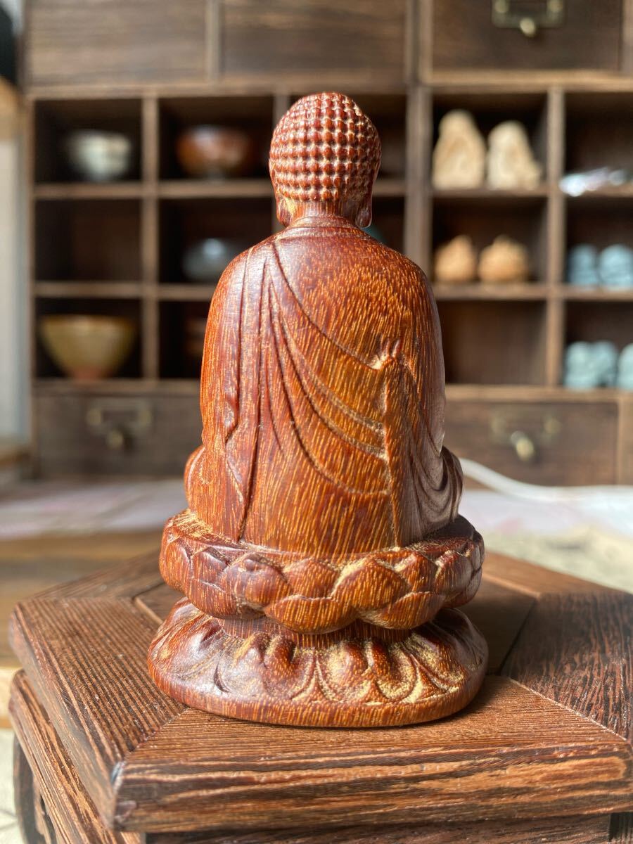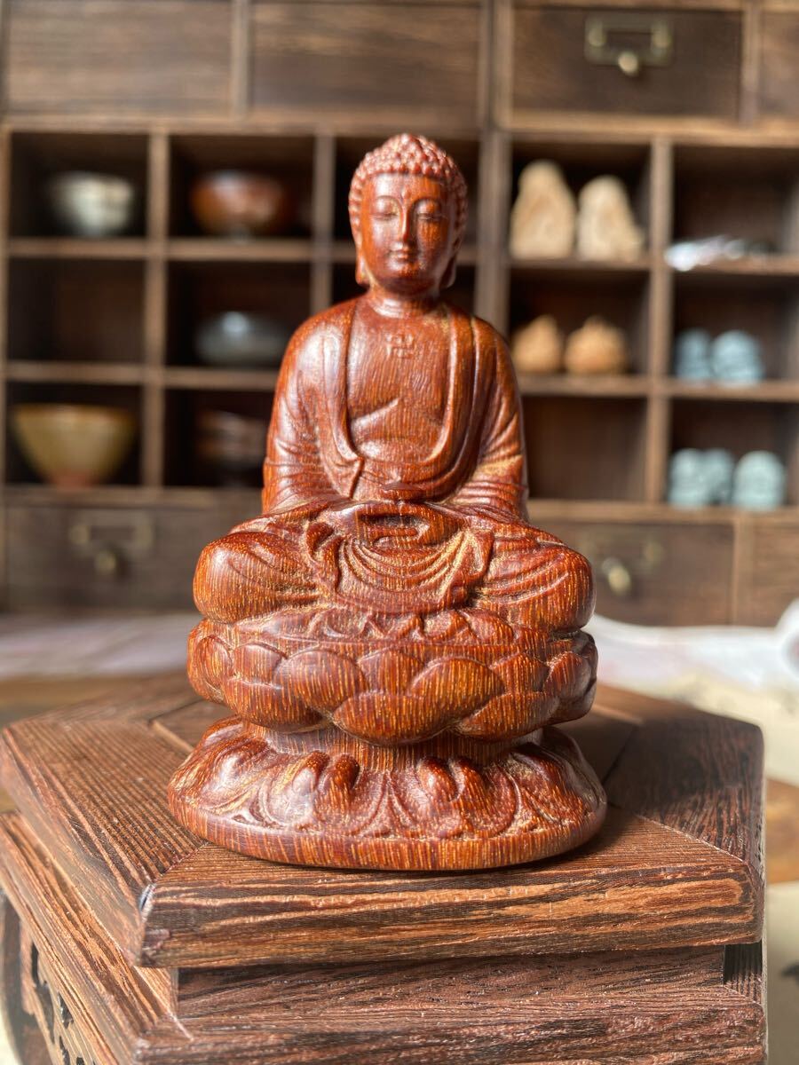 送料無料 実木 大日如来木彫置物 細工精彫 木彫仏像 開運風水 お守り 座像 仏教美術 菩薩仏堂供養仏像置物 高さ8cm