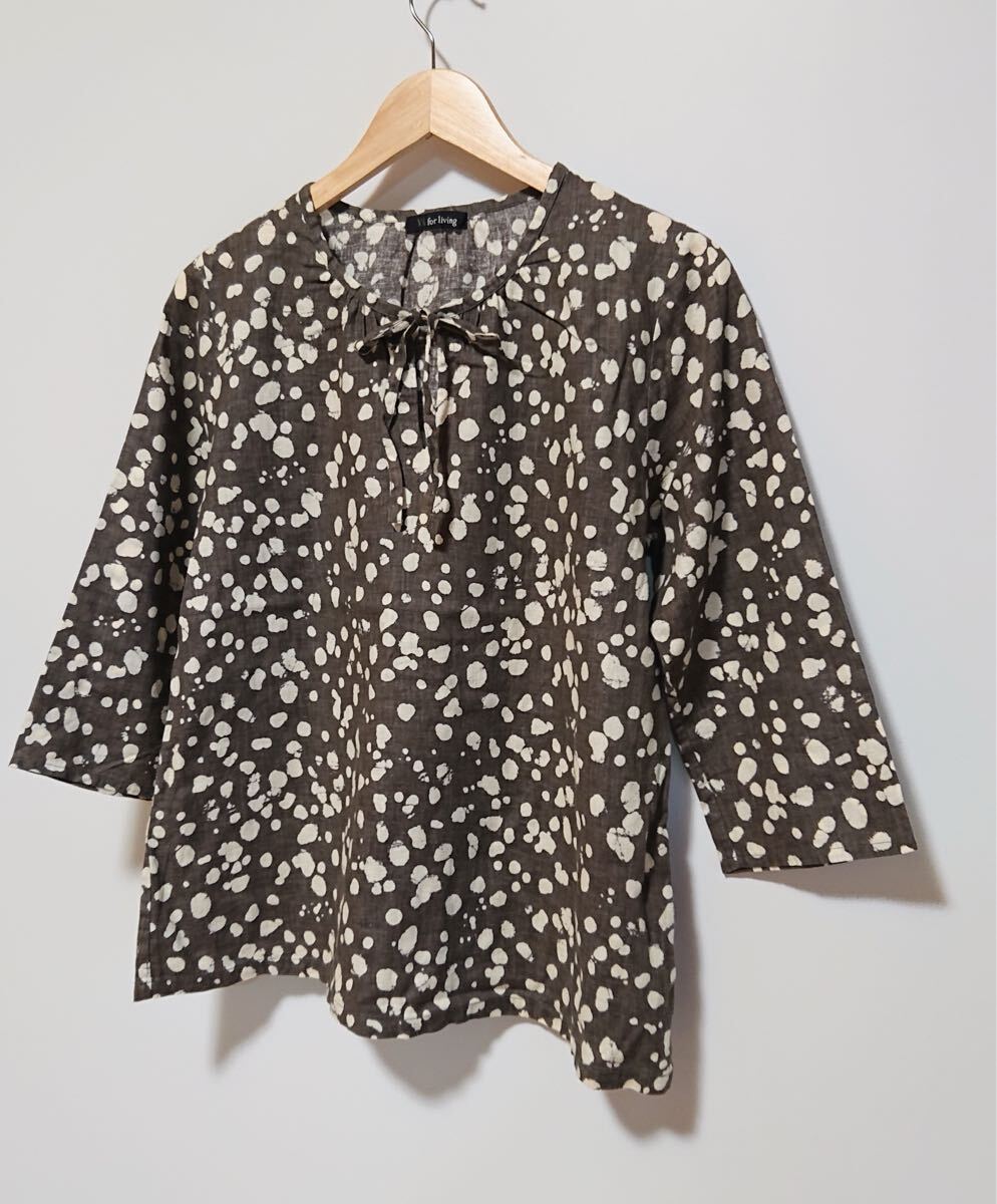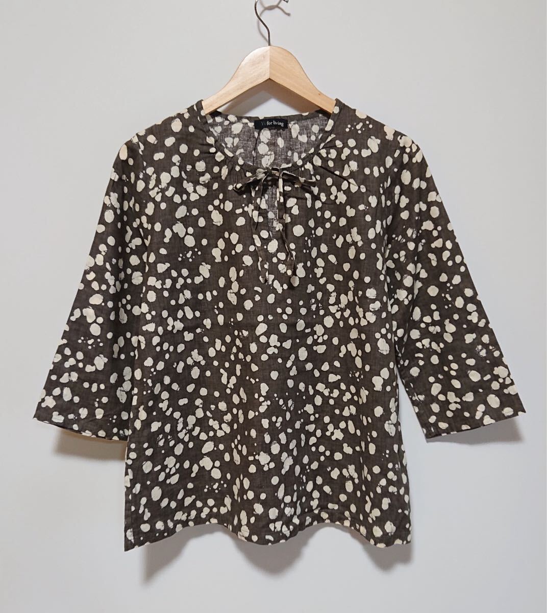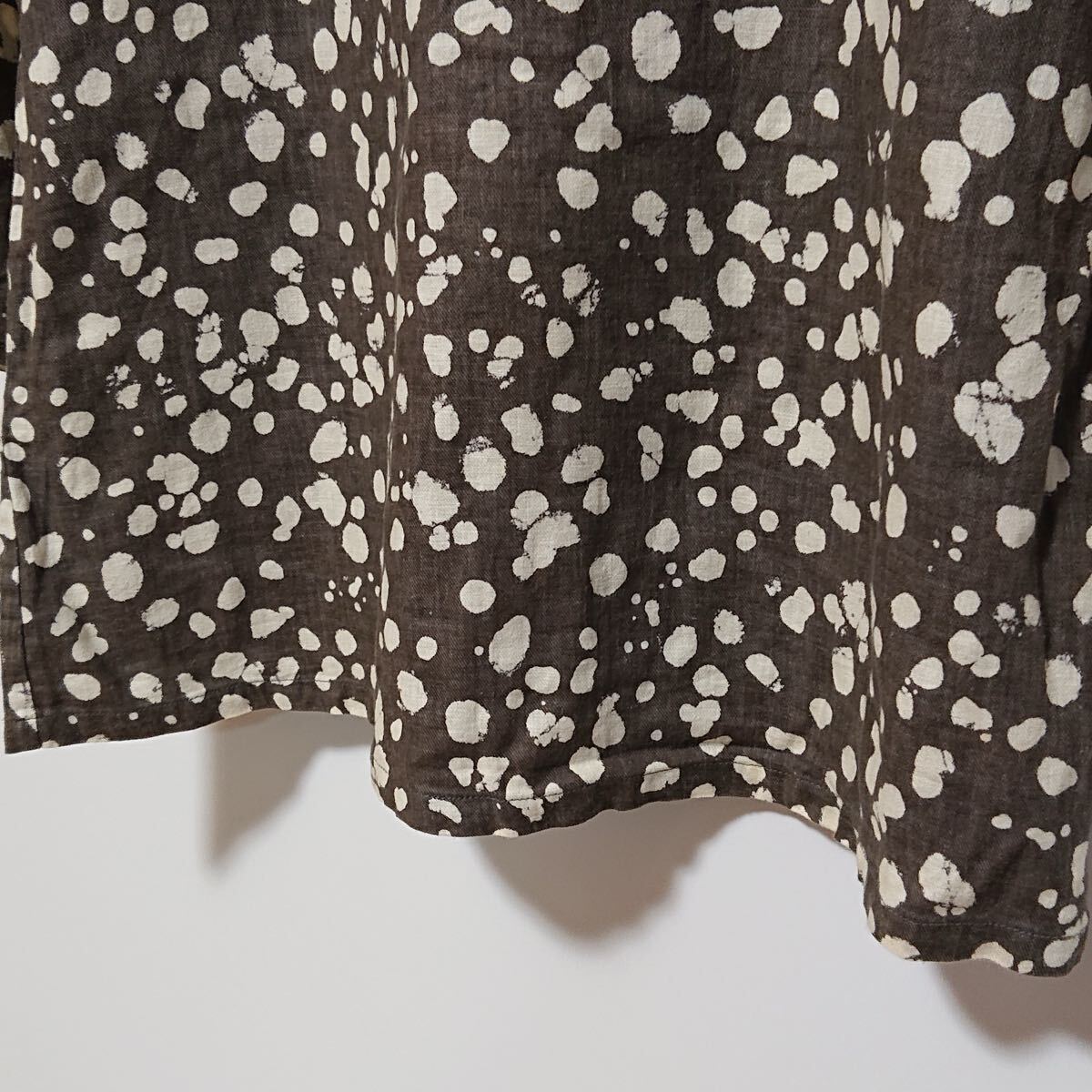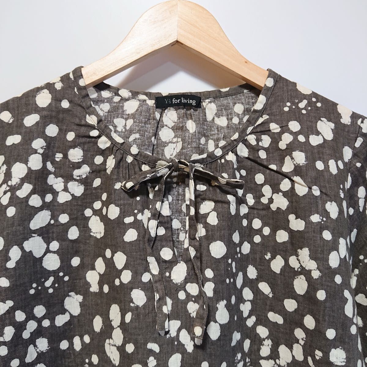 h3699gg 日本製 Y's for living(ワイズフォーリビング)サイズM〜L位 七分袖トップス ドット グレー×ホワイト 綿×麻素材 カジュアル 春夏