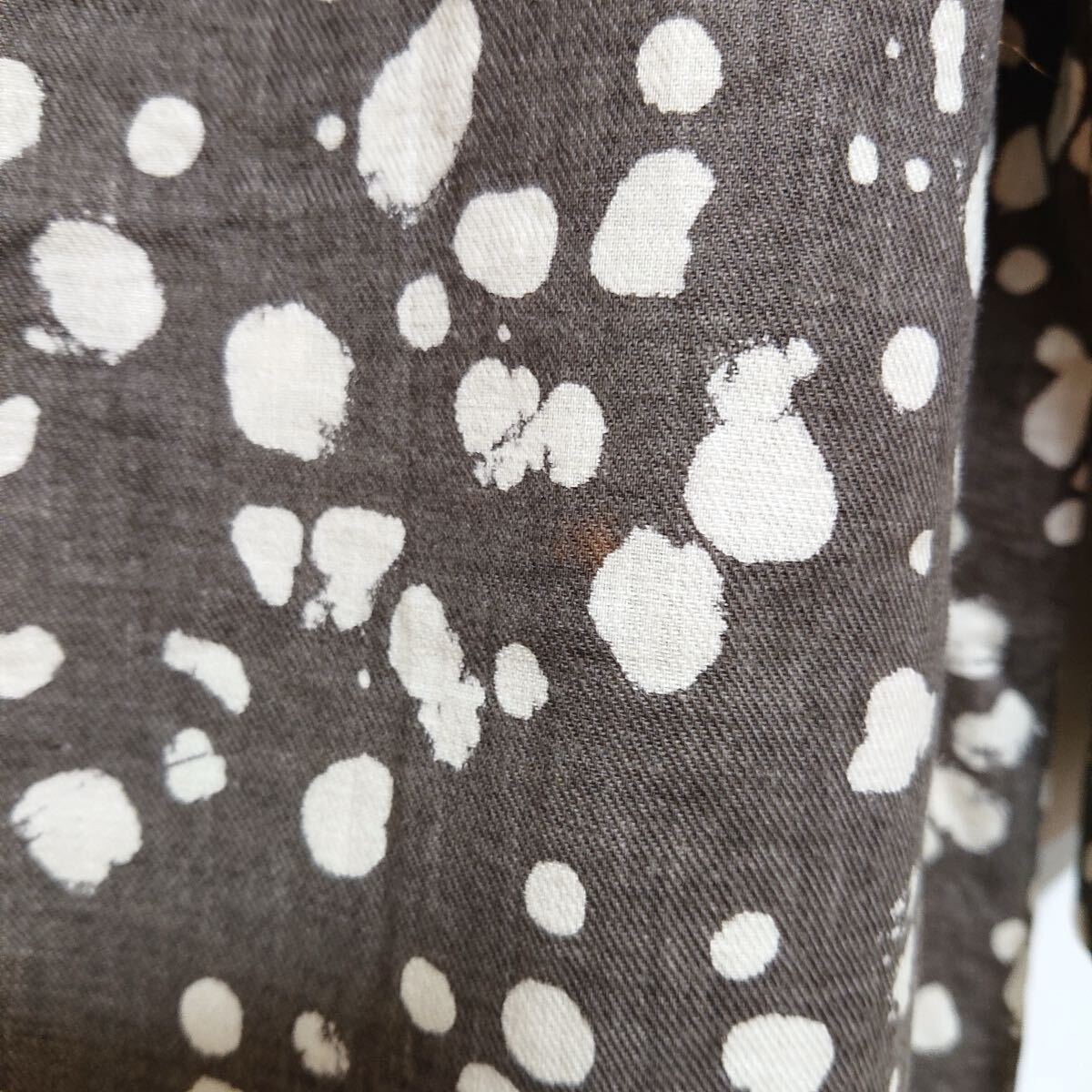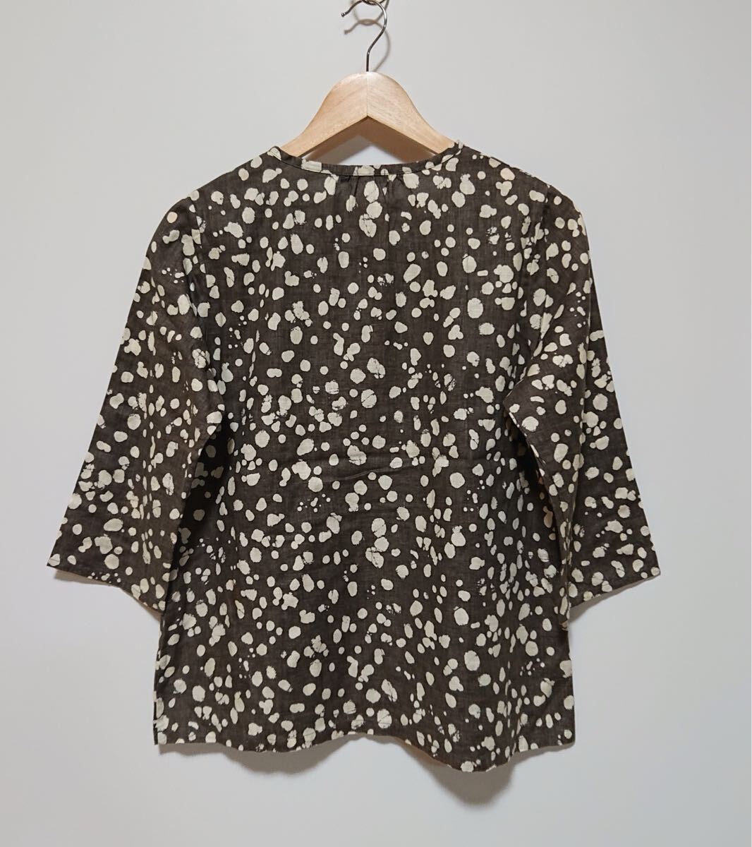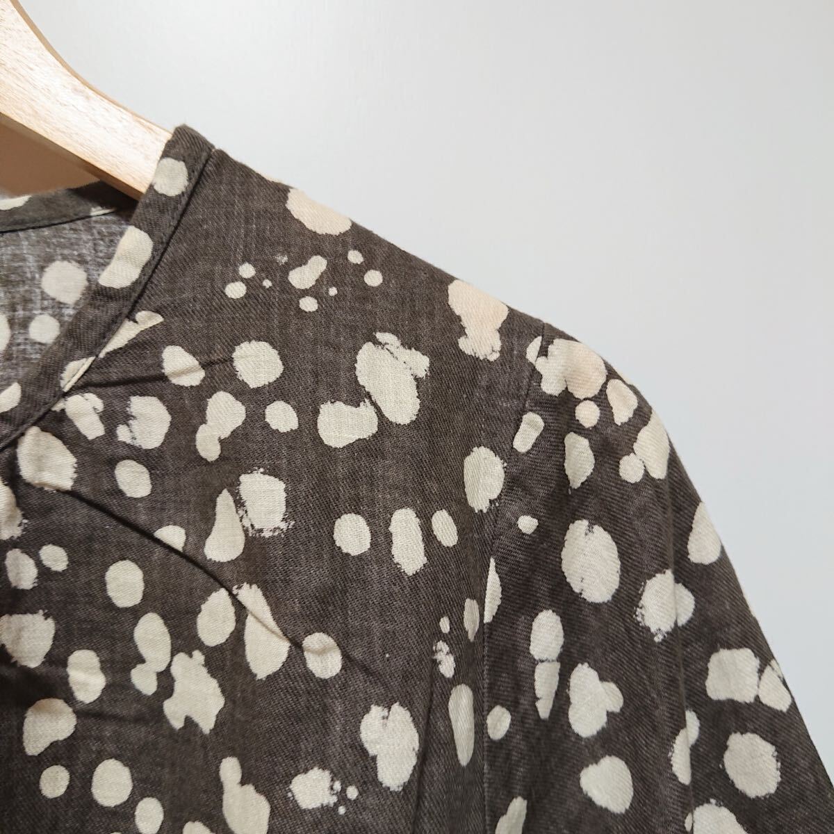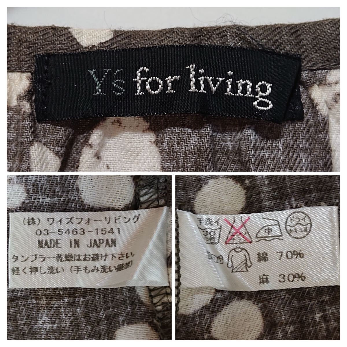 h3699gg 日本製 Y's for living(ワイズフォーリビング)サイズM〜L位 七分袖トップス ドット グレー×ホワイト 綿×麻素材 カジュアル 春夏