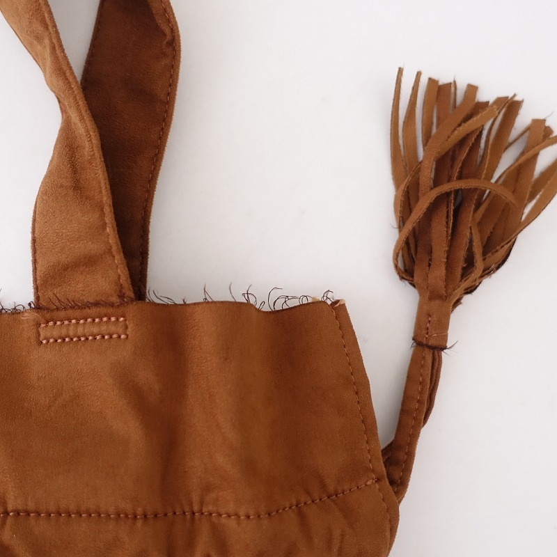 | ZUCCAのタッセルバッグです。カラーはブラウンで、フェイクレザーであしらわれており、開口部は裁ち切り&巾着仕様です。内側にオープンポケットが1つございます。 |