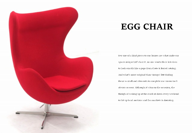 アルネ ヤコブセンの名作 エッグチェア 展示品のご紹介です。1952年にアリンコチェアで一躍その名を轟かせたのち