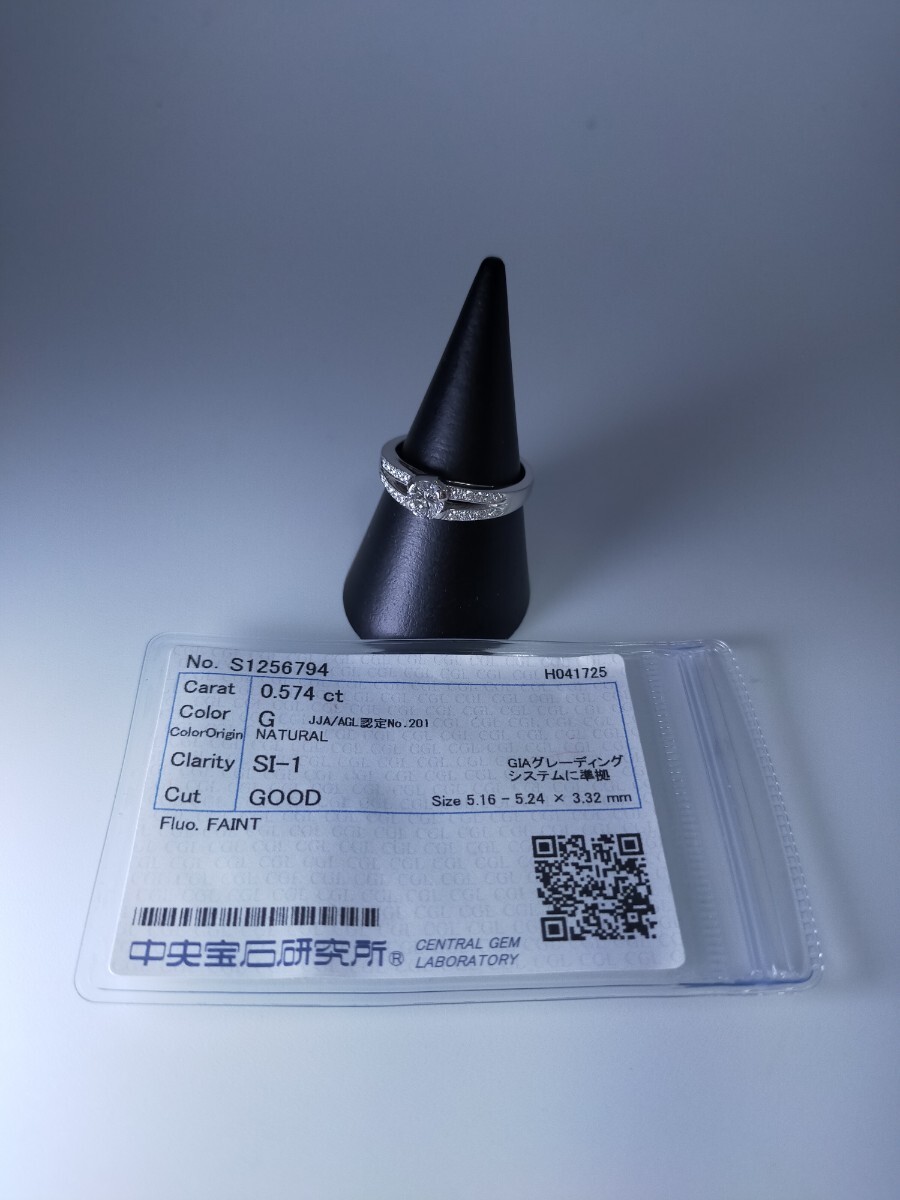新品未使用 0.574ct G SI1 GOOD CGLソーティング付き プラチナ950 リング pt950 17号 0.5ct 0.5カラット 指輪 男女兼用 中央宝石研究所
