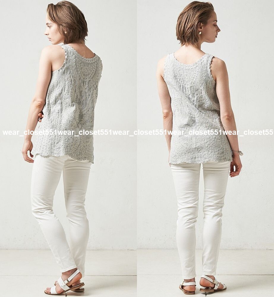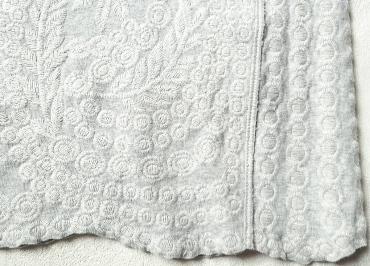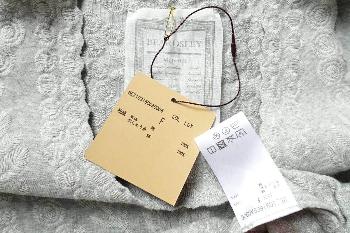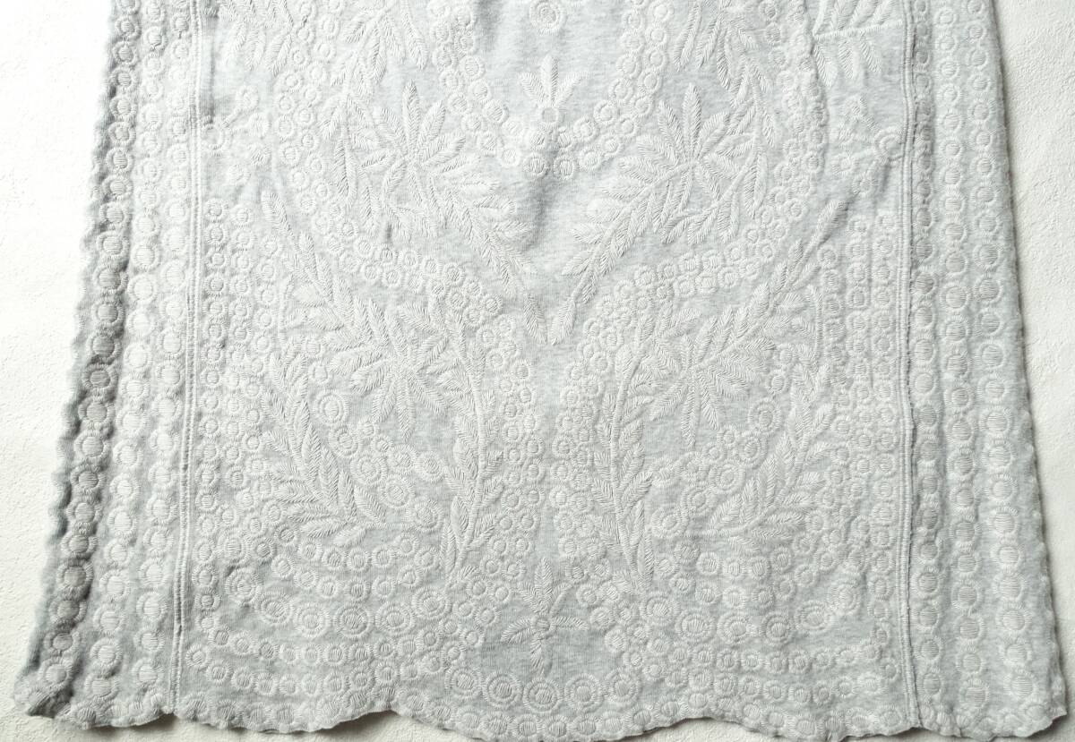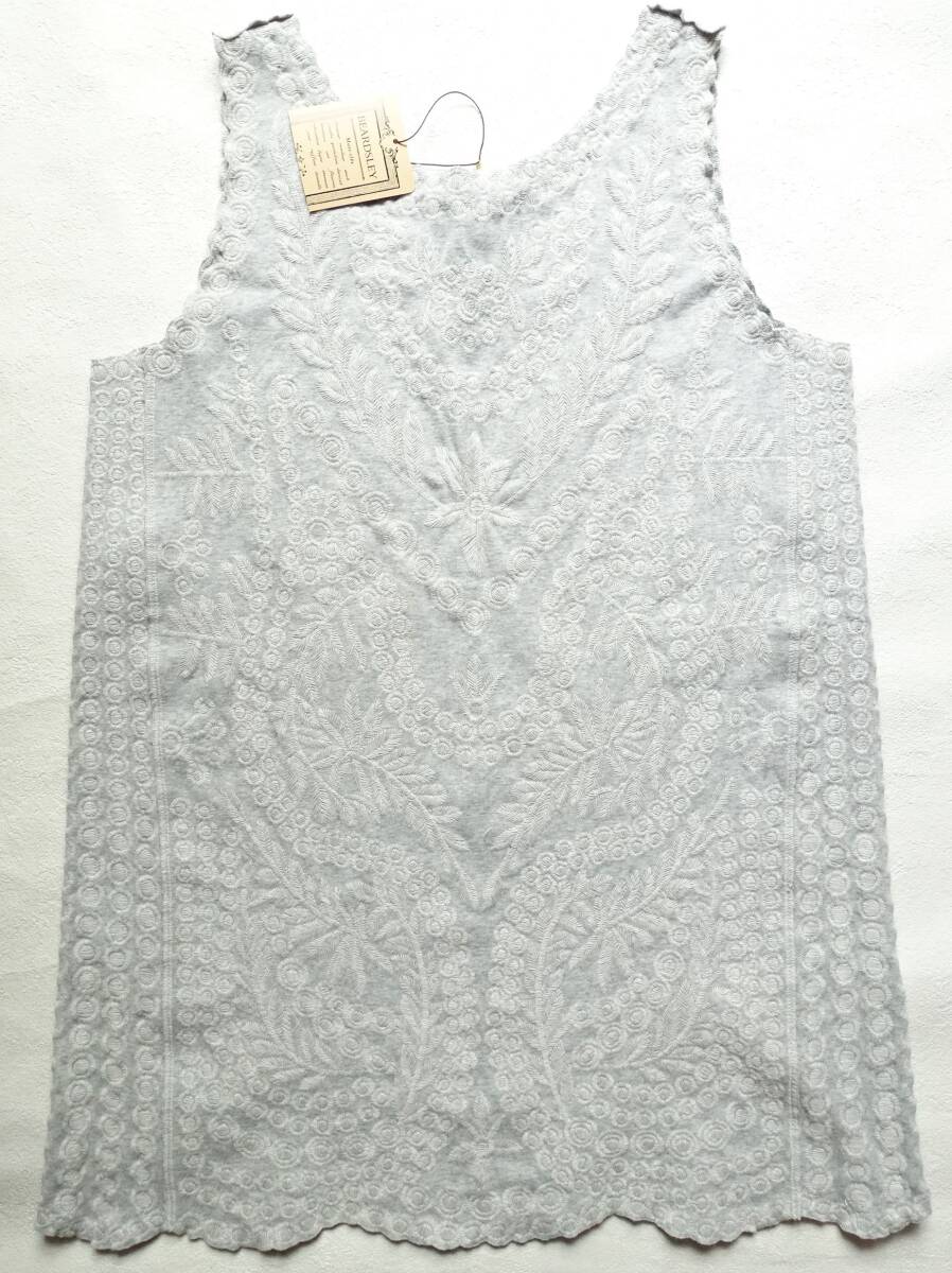 オリジナルの刺繍を全面贅沢に使用した、BEARDSLEY定番の刺繍タンク。2019S/Sの定価19800円。裾や袖口にはスカラップレースのように刺繍を施しカットしています。お尻が隠れる安心して着ていただける着丈と、透け感も気にならない程よい厚み。刺繍が施されているのに柔らかい着心地。カーディガンやジャケットのインナーにも最適。
