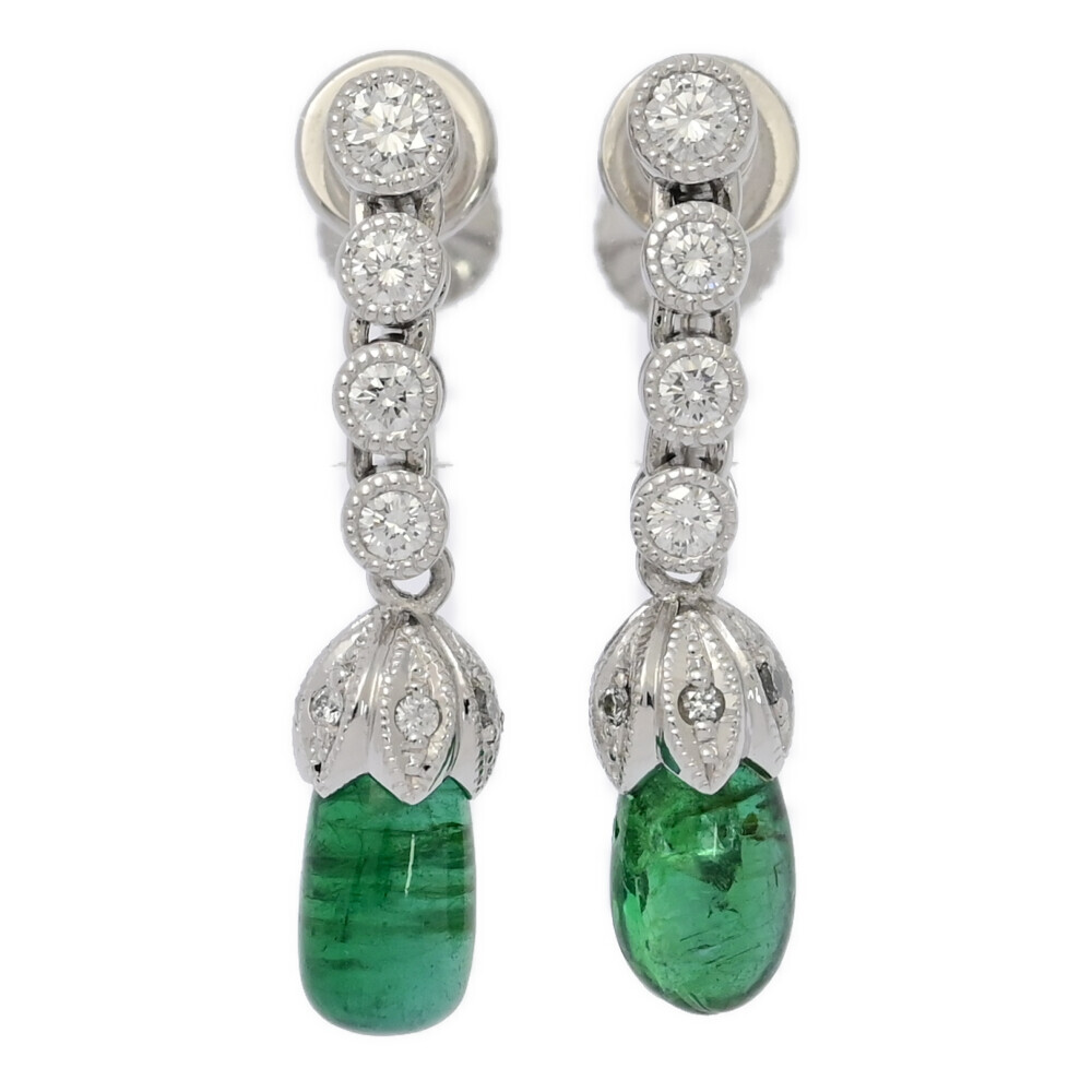 | EM1.978ct/FD:1.865ct/Queen クイーン コロンビア産・ペアフリル・エメラルド・ダイヤモンド イヤリング/Pt950-8.3g/プラチナ お問合せ番号 ■583717 (PEMA0050L) | |