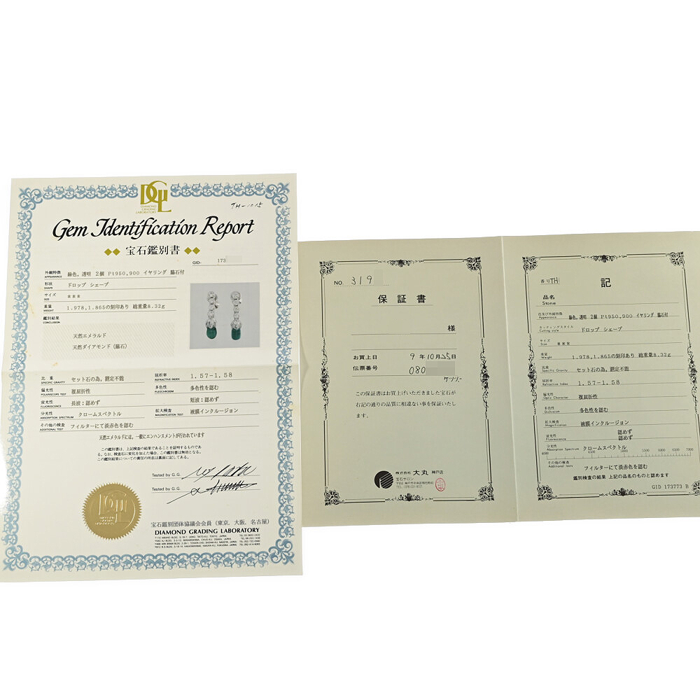 | 付属品 | ダイヤモンドグレーディングラボラトリー鑑別書 保証書(2009/10/25購入) |