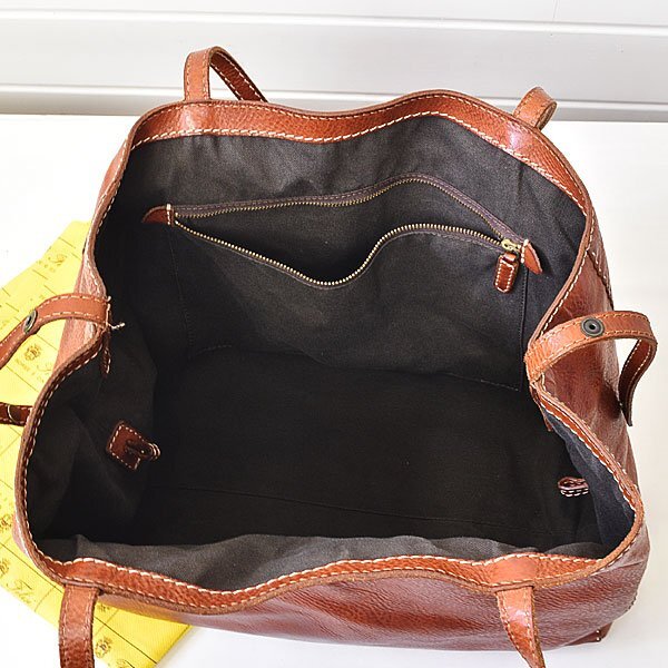 大き目のオールレザーのトートです ■付属品等:袋 ■カラー:ブラウン ■素材:レザー ■サイズ:表記なし ■寸法(cm、平置き測定):横約39 ×縦約31 ×マチ約 15 持ち手長さ約51 <採寸方法は下部に記載> ■商品状態:(B)古着(通常使用感程度の古着になります。)傷や擦れあり ![]() 管理番号:25g1456 |