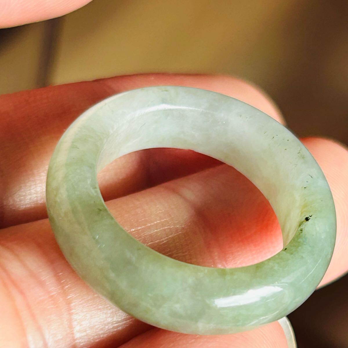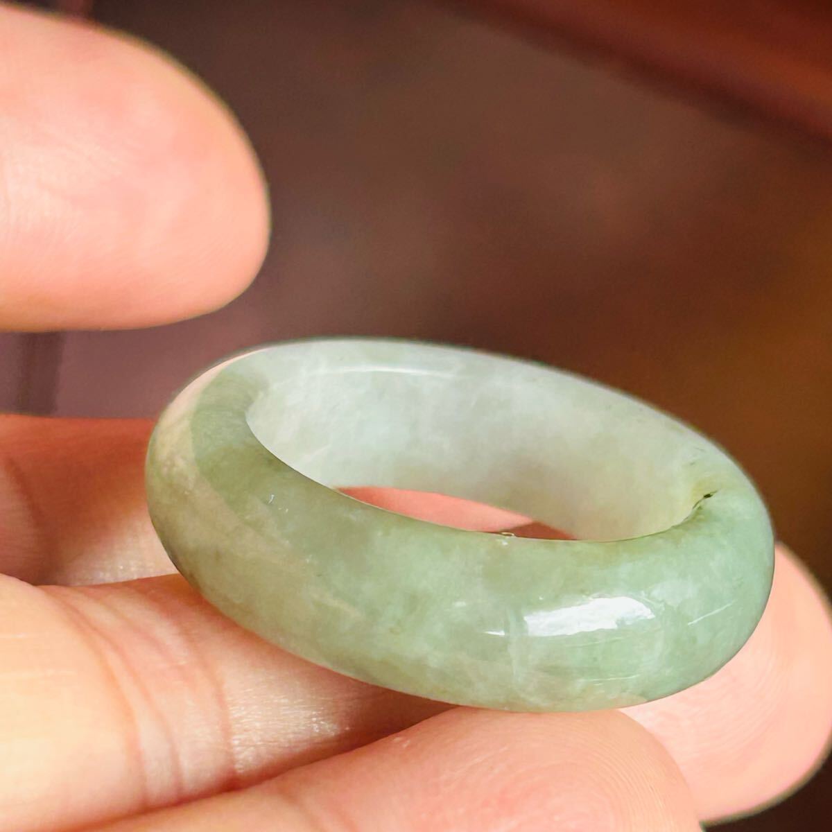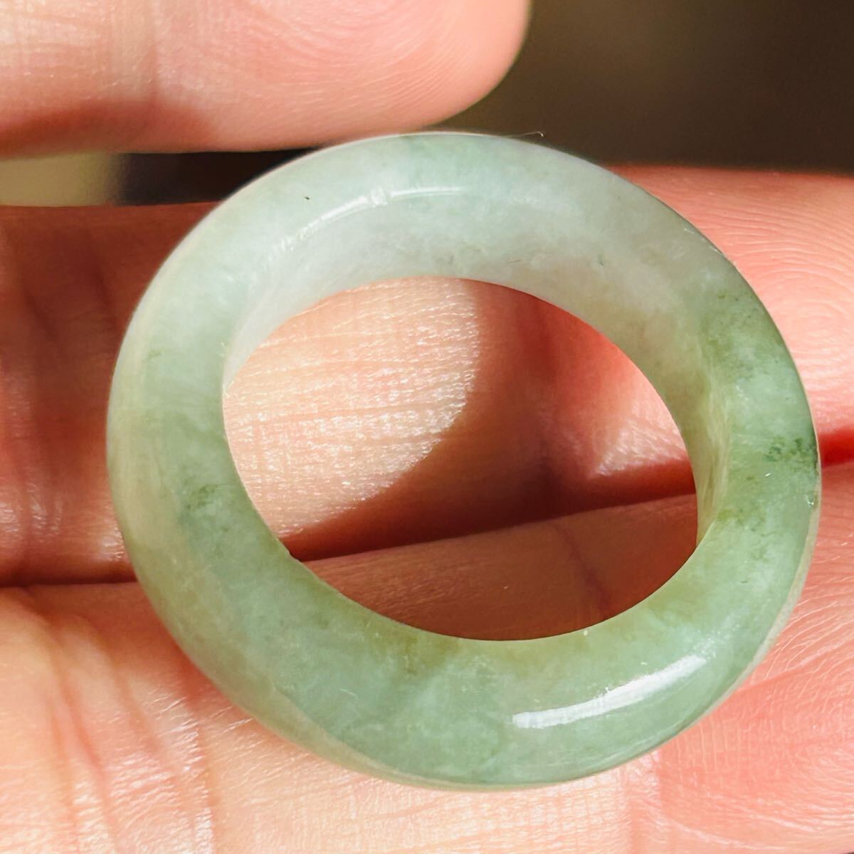 本翡翠 ミャンマー ヒスイ (A貨)リング18-19#。幅:7mm。厚さ:4.1mm無処理 無着色。男女兼用 A44