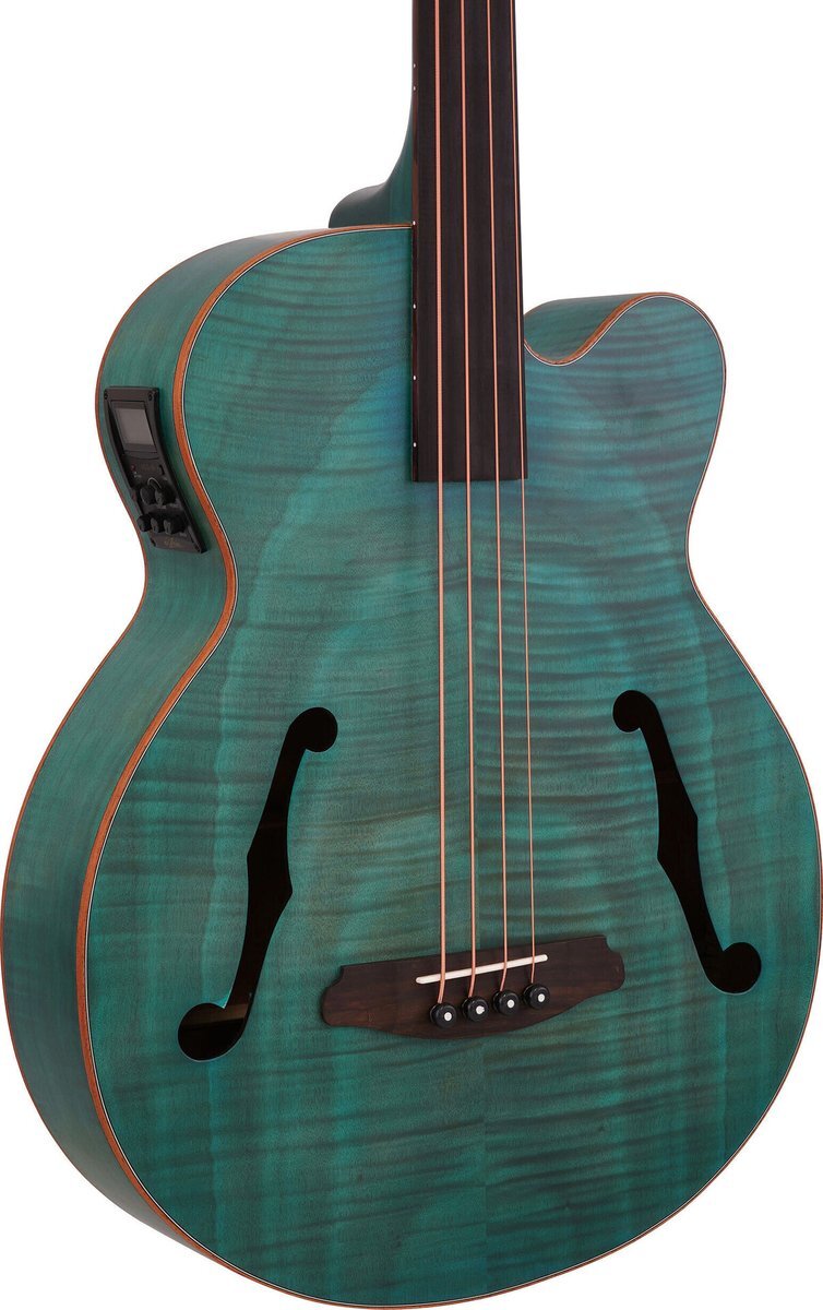 • 4バンドイコライザー、チューナー付きのプリアンプを搭載したアコースティックベースのフレットレスモデル。温かみのある豊かなサウンドが魅力です。ボディにはウッドバインディングを施し、木目をいかしたオープンポアのマット仕上げを採用。アンプを使用してはもちろん、生音でも十分に楽しめます。