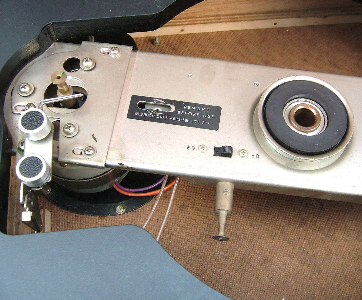 ■本体+キャビネット類の他に 新品のゴムベルト 50Hz用プーリー1個と60Hz用プーリー1個の計2個 当機用の純正電源ケーブルが付属いたします 50Hz用プーリーは可動部に装着済みで60Hz用プーリーは交換用に内部フレームに固定装着されています必要時にご使用ください