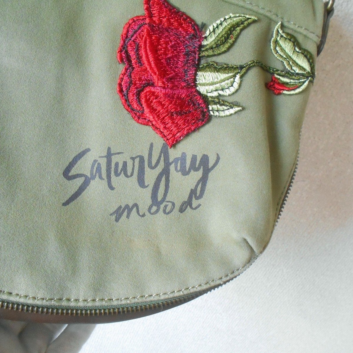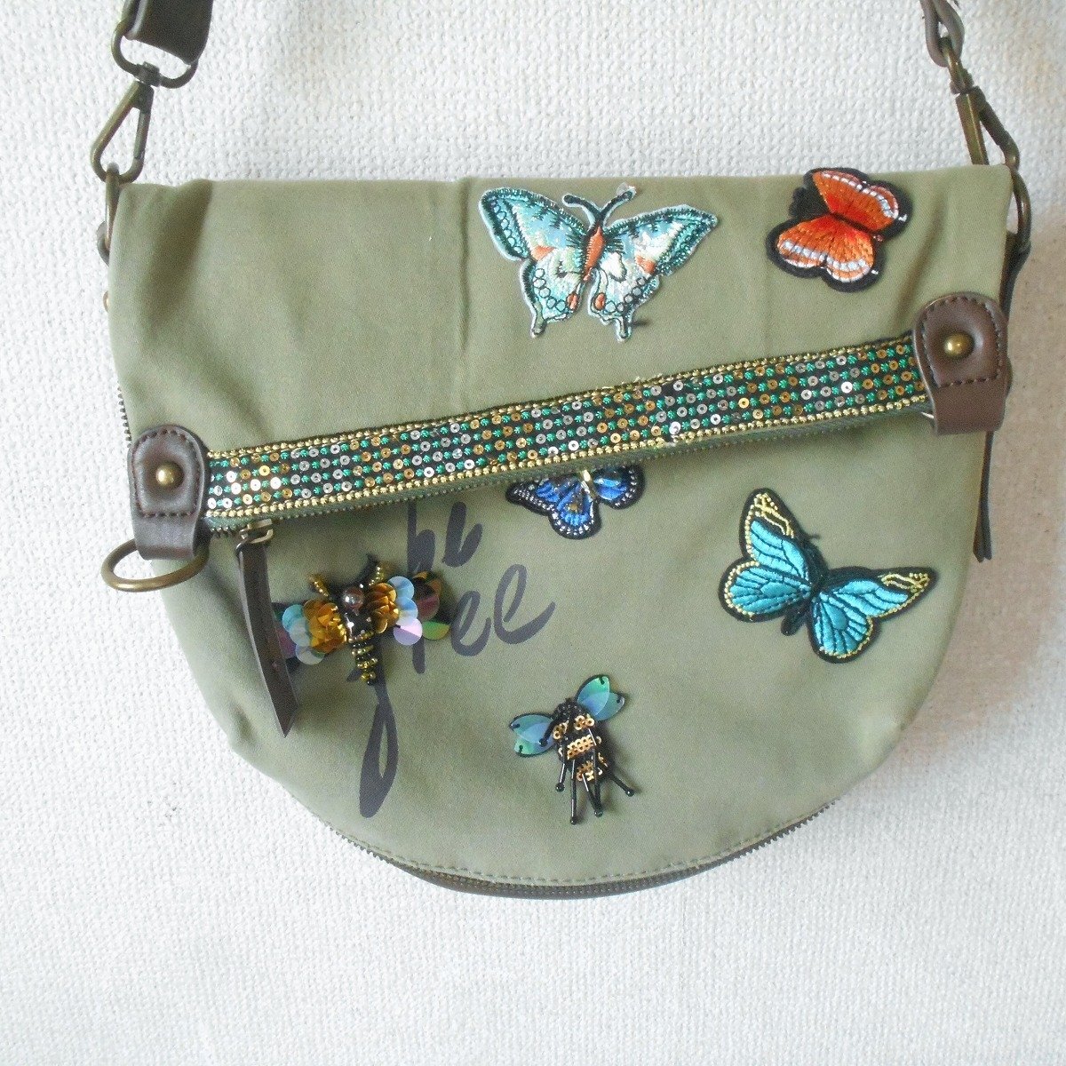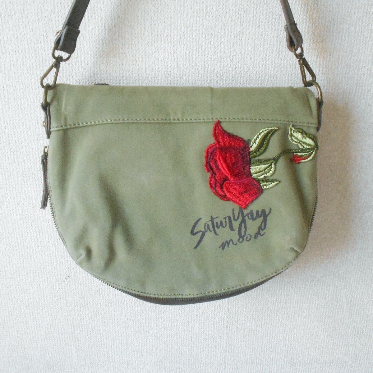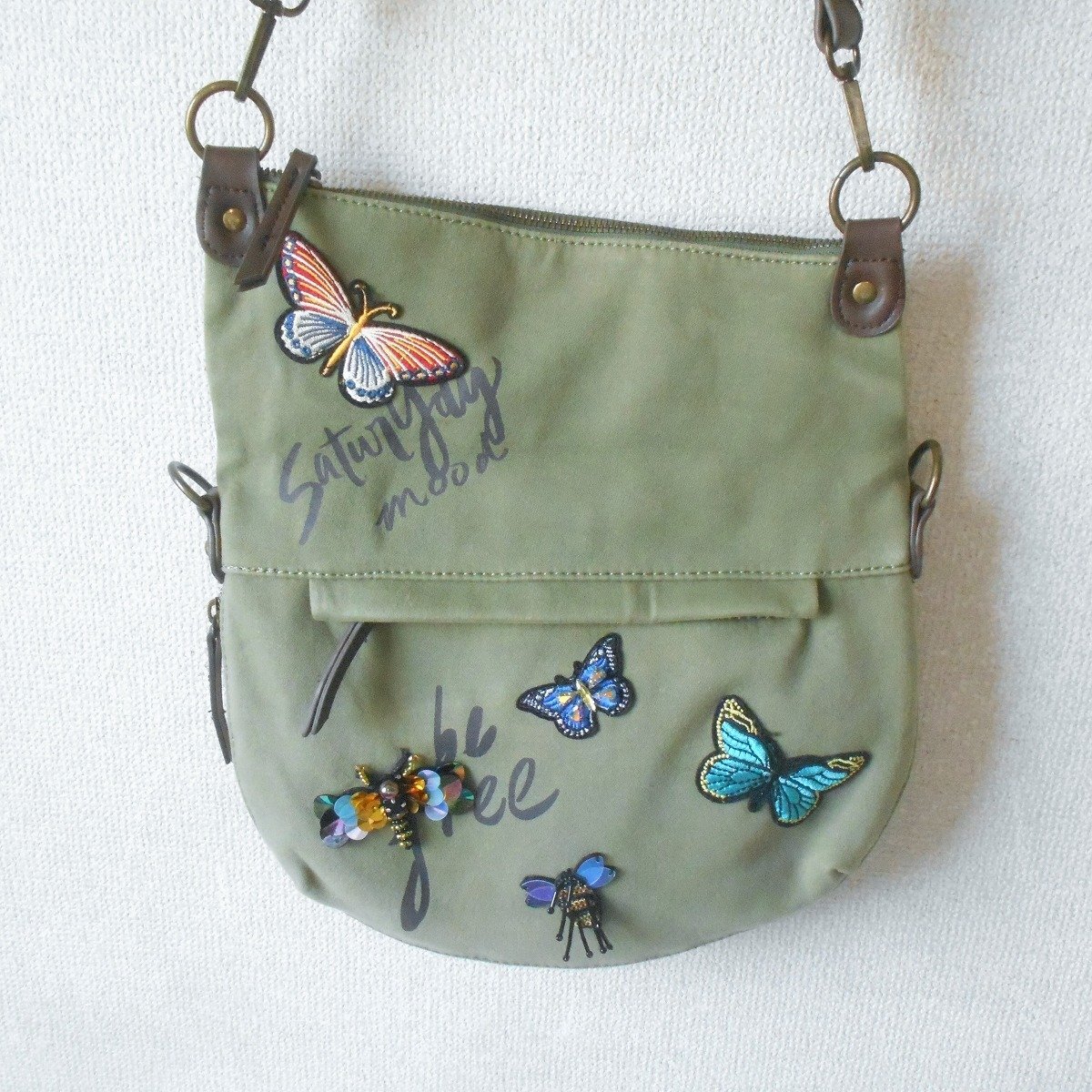【ポイント】デジグアルのバッグになります。お色はグリーン系カーキで持ち手の位置が変えられる2WAYバッグです。