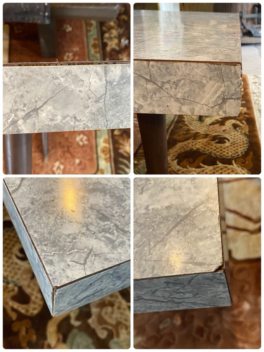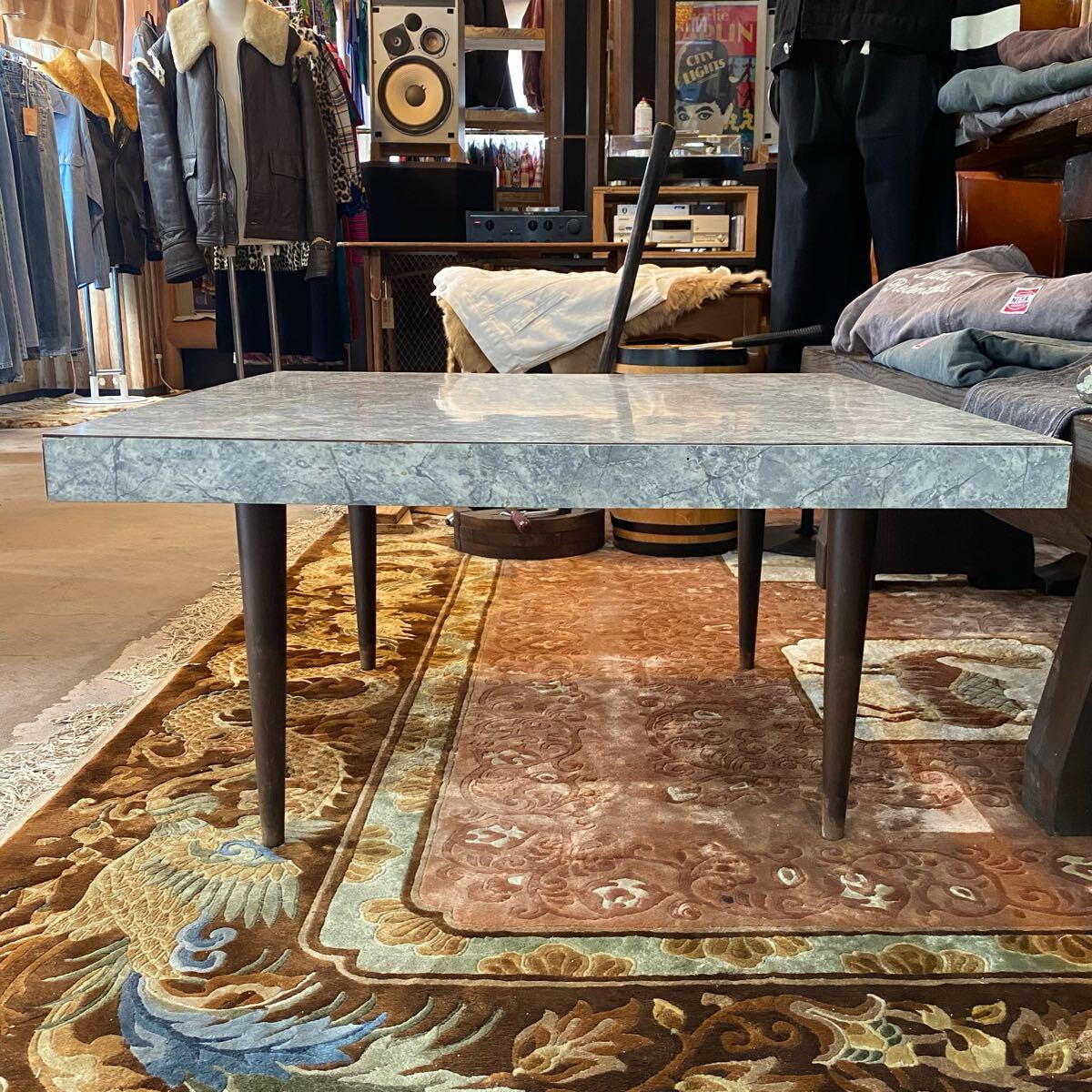 1950年代頃ミッドセンチュリー期のローテーブルです。 大きめ76cmの正方形。大理石調の天板。 アジのある当時らしい脚に薄色の大理石模様。存在感ありますが、重量無く使いやすい一品です。 【サイズ】(約) 高さ382mm 天板760mm×760mm 【状態】 各角にカケ等ございます。 経年の細かなキズや汚れございますが、アジとしてお楽しみください。 商品No:k00249 |