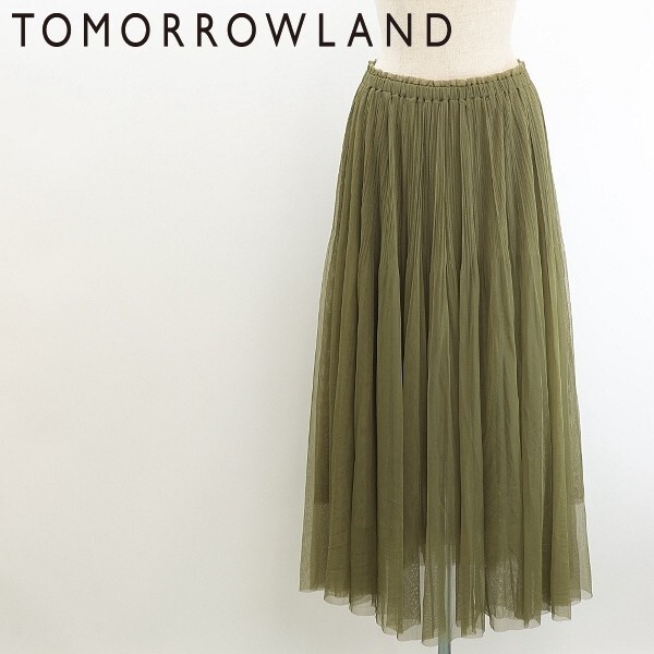 【FA175】◆TOMORROWLAND トゥモローランド ソフトチュール プリーツ フレア ロング スカート オリーブグリーン 36 | |
