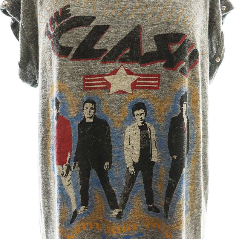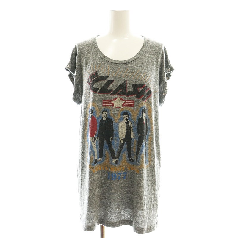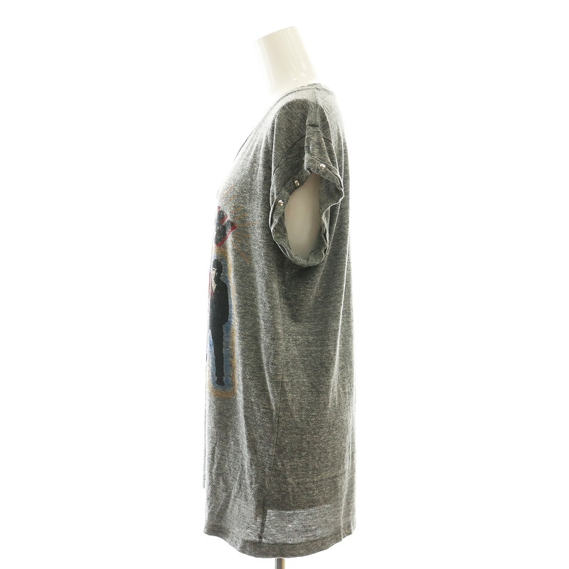 ミュージアムニュー museum neu neu v スタッズロックTシャツ カットソー フレンチスリーブ グレー /HK ■OS レディース