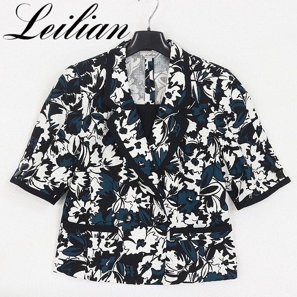 ◆Leilian レリアン 総柄 コットン パイピング ショートスリーブ ダブル ジャケット 9 | |