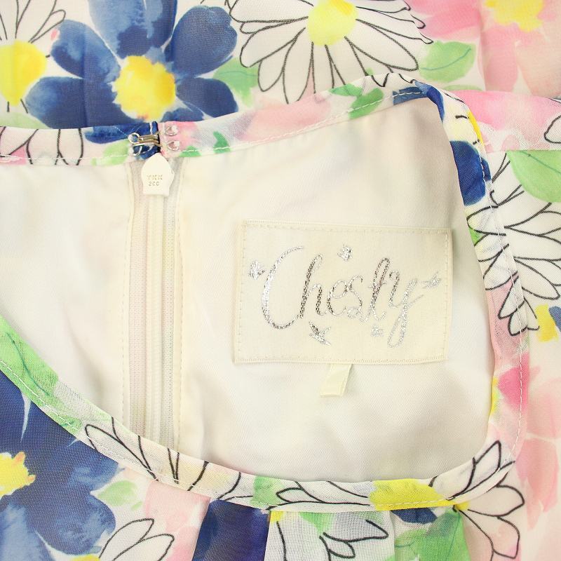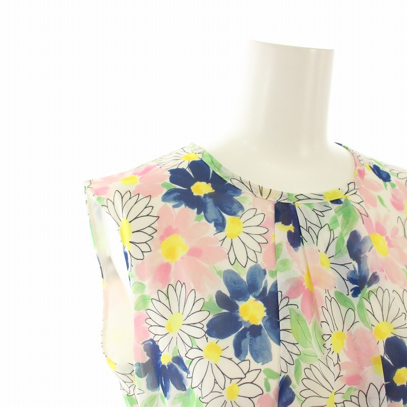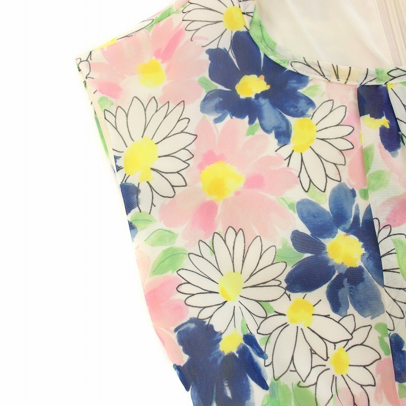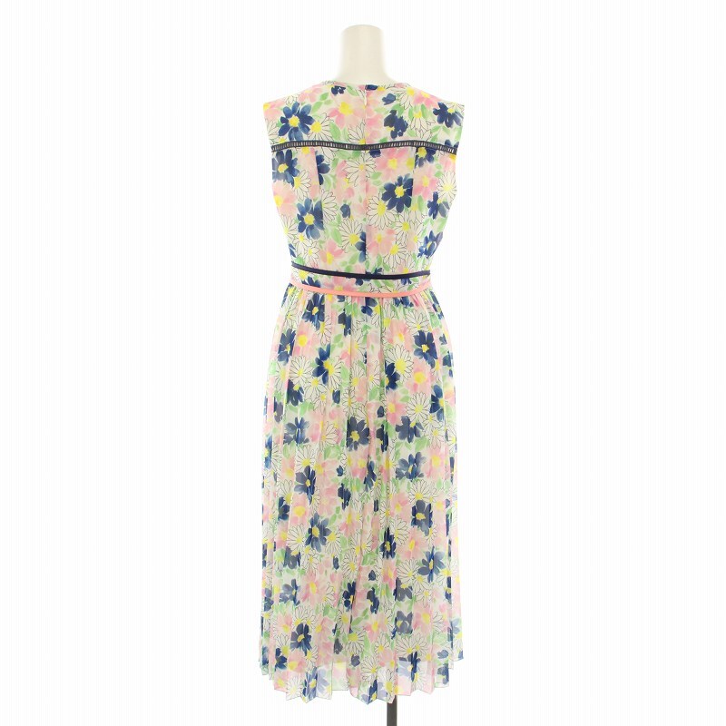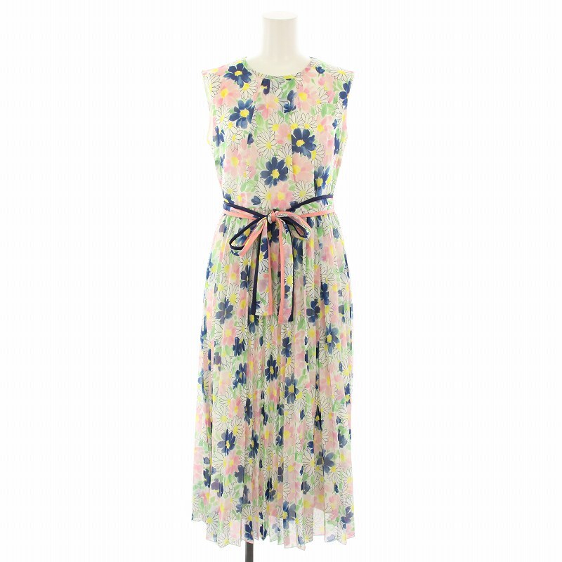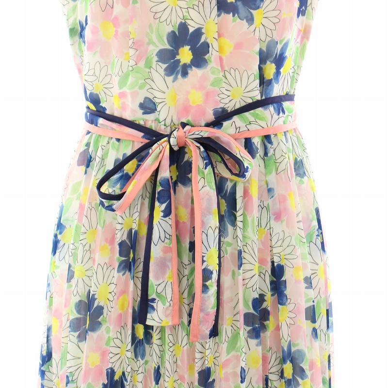 チェスティ Chesty フラワープリーツコートワンピース ロング ノースリーブ シアー 花柄 リボンベルト 0 ピンク 青 21D505 レディース
