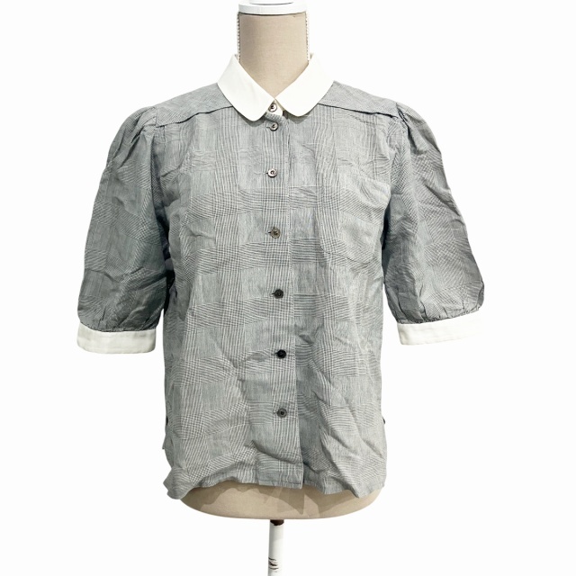 レリアン Leilian シャツ ブラウス チェック グレー 約M ■GY09 レディース