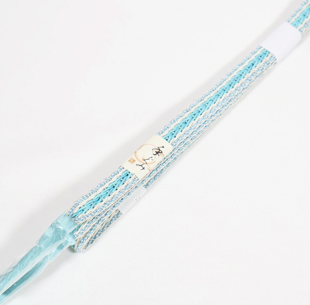 | 帯締め | 夏用 手組紐 帯締め 新品 羅 エメラルドグリーン 白 織柄 |