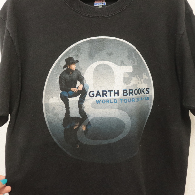 D384 2000年代製 Hanes ヘインズ 半袖プリントTシャツ■00s 表記Lサイズ 黒 ブラック ガースブルックス ロックT アメカジ 古着 激安