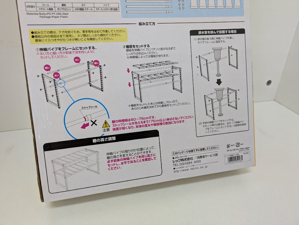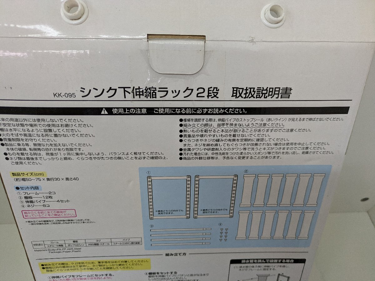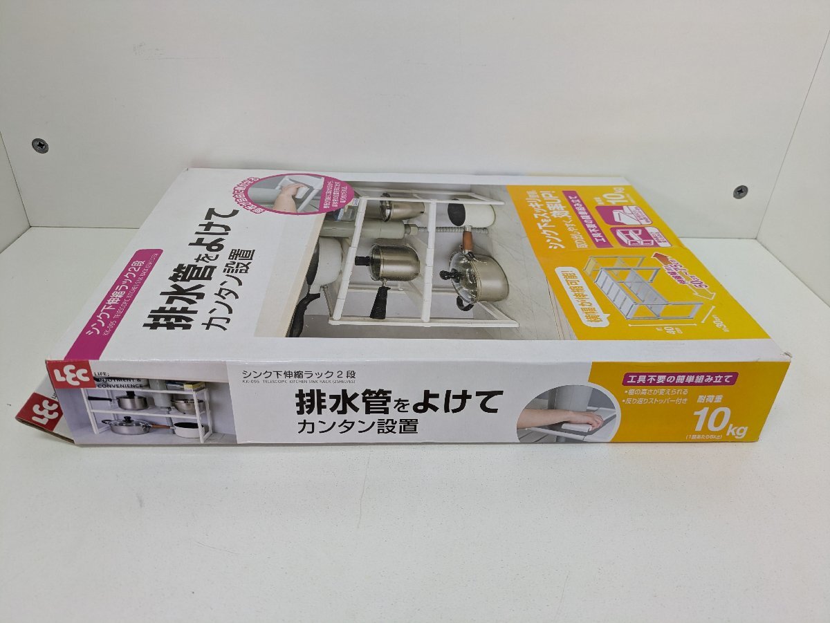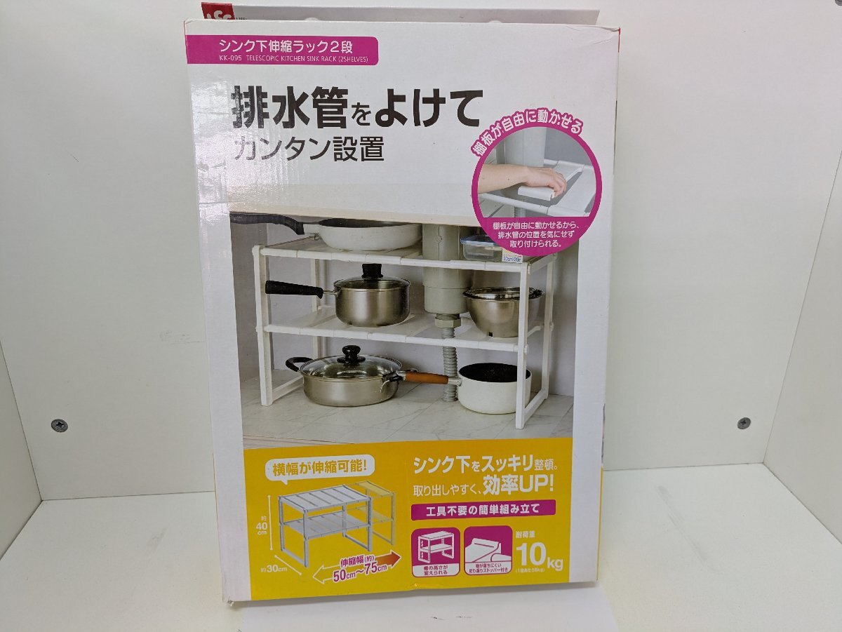 ♪シンク下伸縮ラック2段 配管をよけて カンタン設置 長期保管品