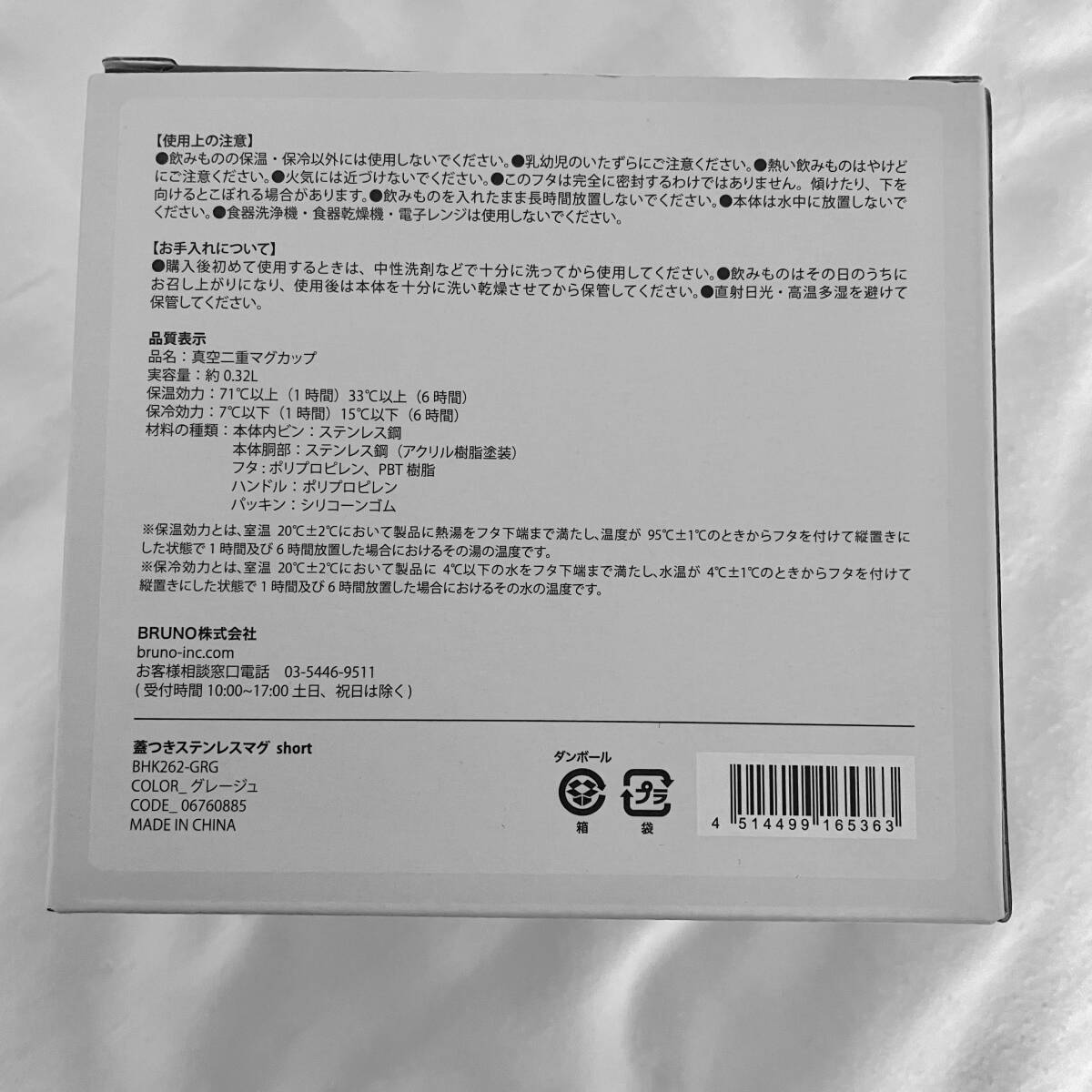 送料無料 未使用品 BRUNO 蓋つきステンレスマグ short 320ml BHK262-GRG (グレージュ)
