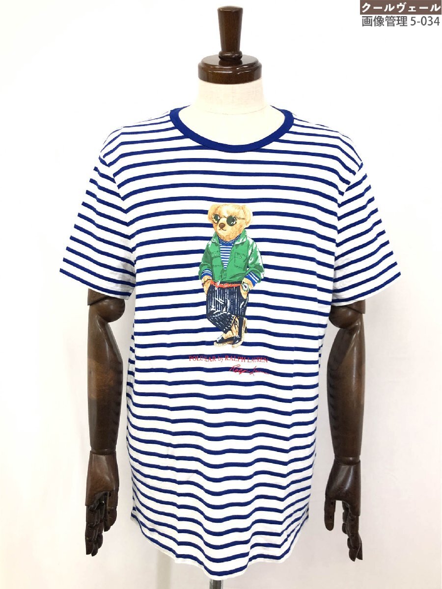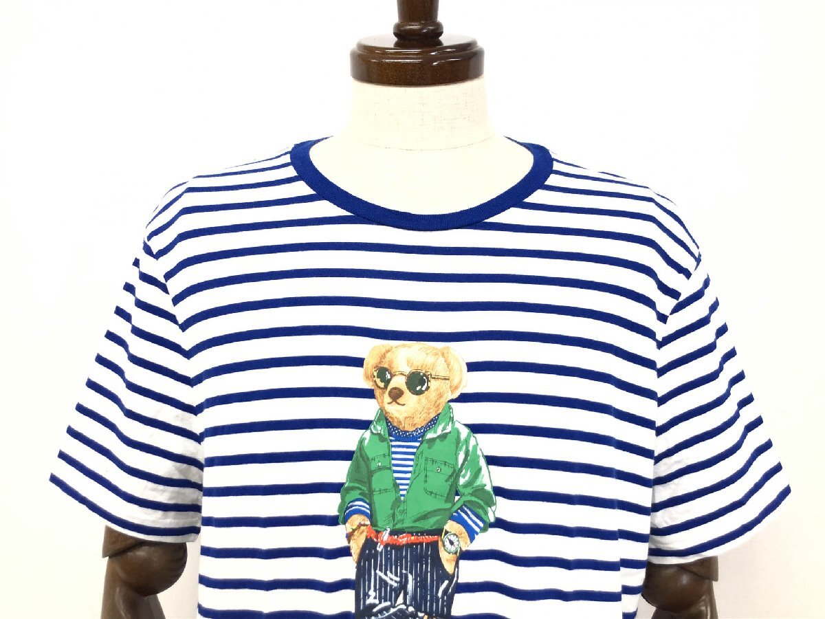 超美品【ポロラルフローレン】 CUSTOM SLIM FIT ポロベアプリント半袖Tシャツ (メンズ) sizeXL ブルー系 ボーダー柄 0200013497 ◇33MT6145