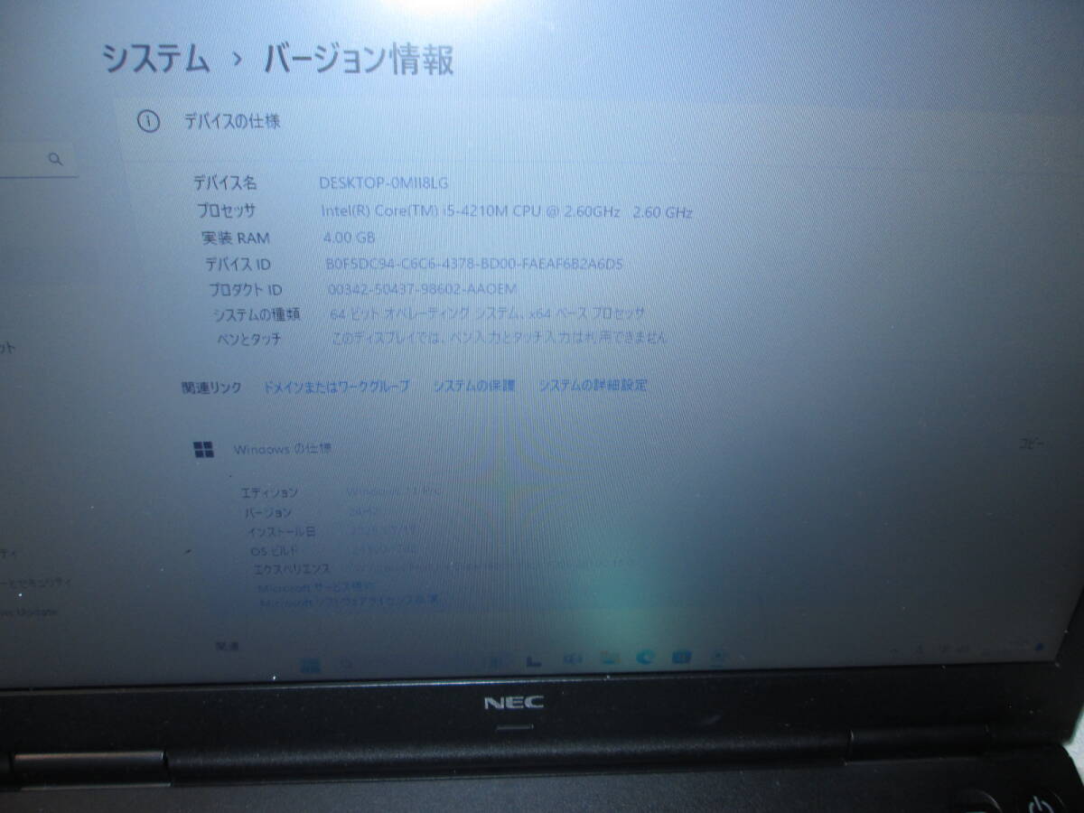 NEC VersaPro VK26TX-N  Windows11 Pro 24H2 64bit  Intel Core i5-4210U 2.60GHz  4GB 500GB  15.6型  ブラック系  Li-Office  AC付