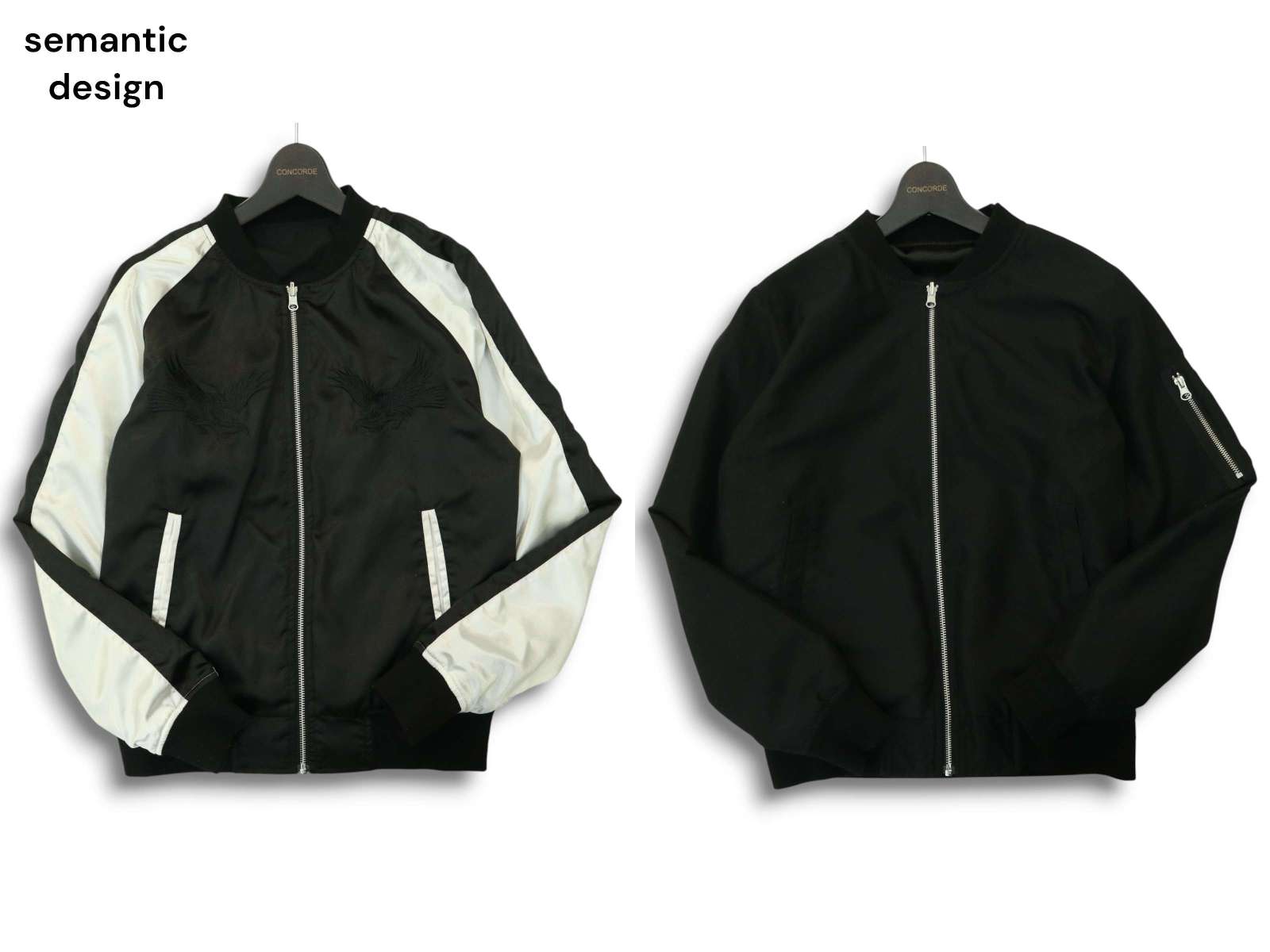 semantic design セマンティック デザイン リバーシブル★ イーグル刺繍 スカジャン ジャケット ブルゾン Sz.M メンズ 黒