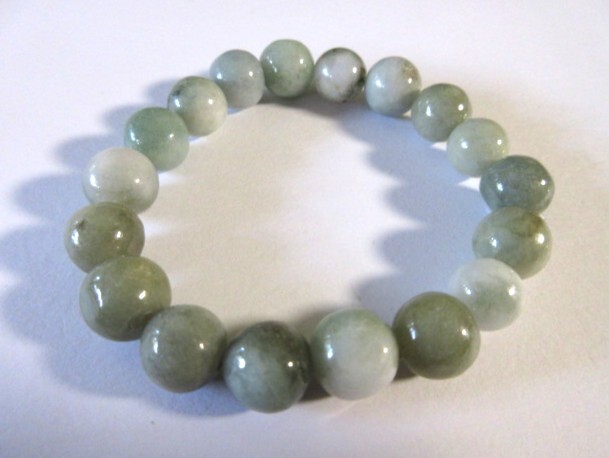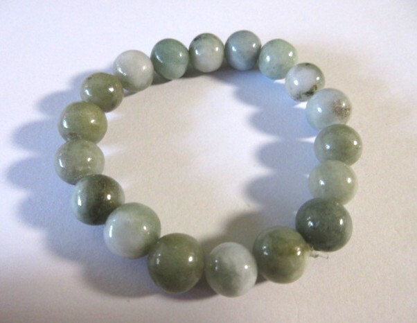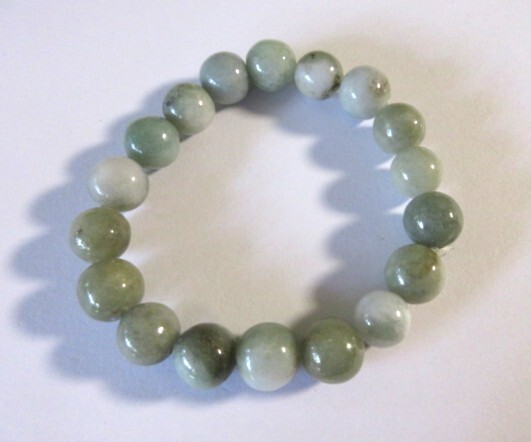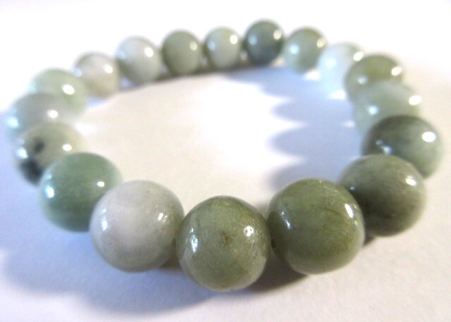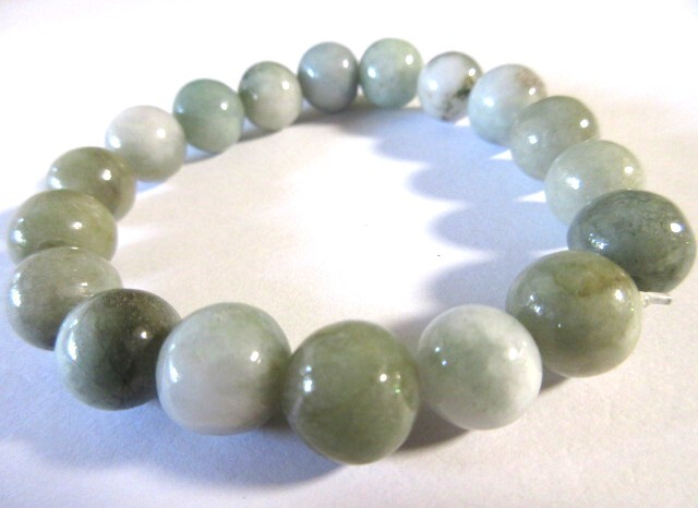 淡いグリーンのミャンマー産天然ヒスイの丸玉ブレスレットです。内周が約15.5~16cmです。シリコンゴム入り。非加熱。