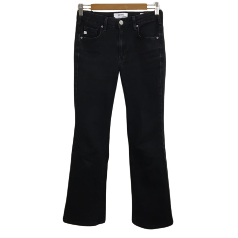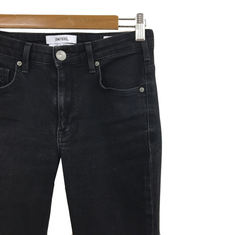 サムシング something パンツ デニム ジーンズ フレア ロング ジップフライ 28 黒 ブラック レディース