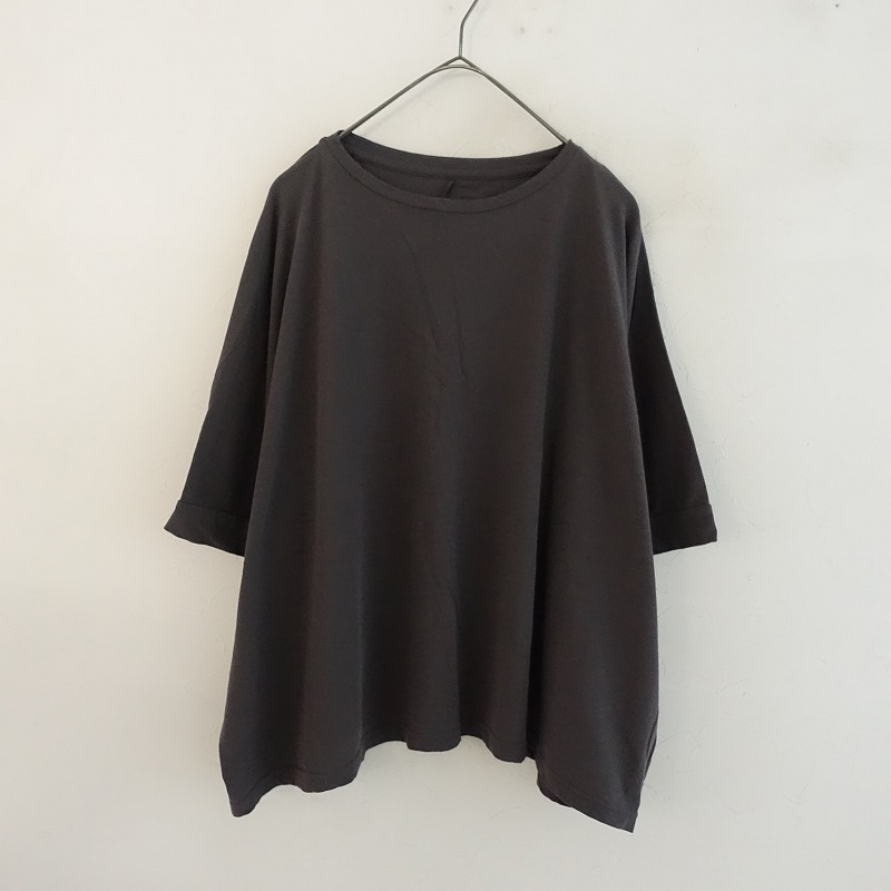 evam evaのコットンワイドプルオーバーです。カラーはチャコールグレーで、ドライタッチなコットン天竺地で仕立てられています。プルオーバータイプで、ゆったりとしたワイドな身幅のデザインです。定価(メーカー希望小売価格) 18,700円の商品です。 |