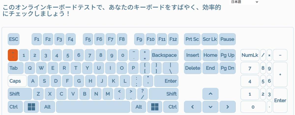 (キーボードテスト結果のスクリーンショットをご確認ください)