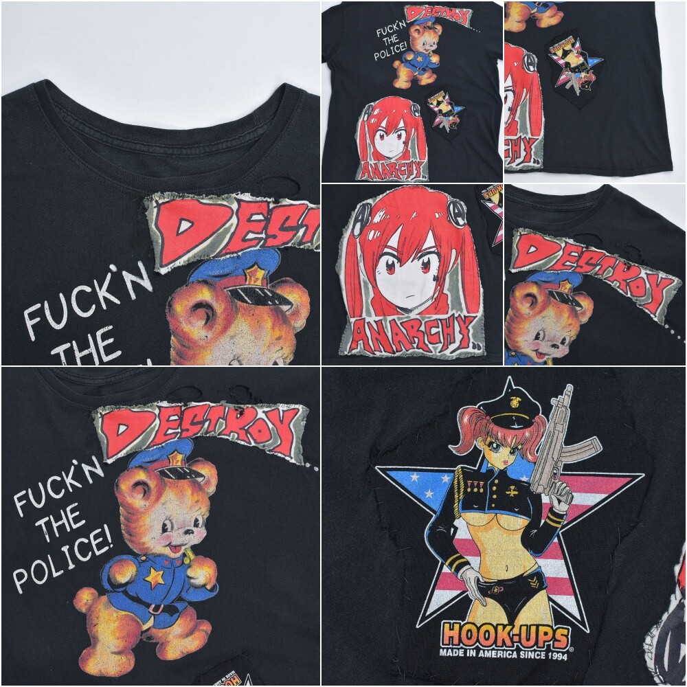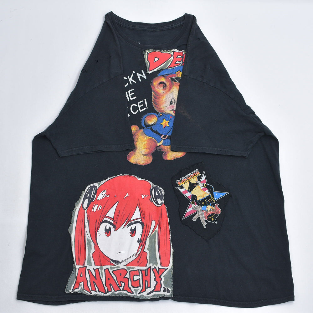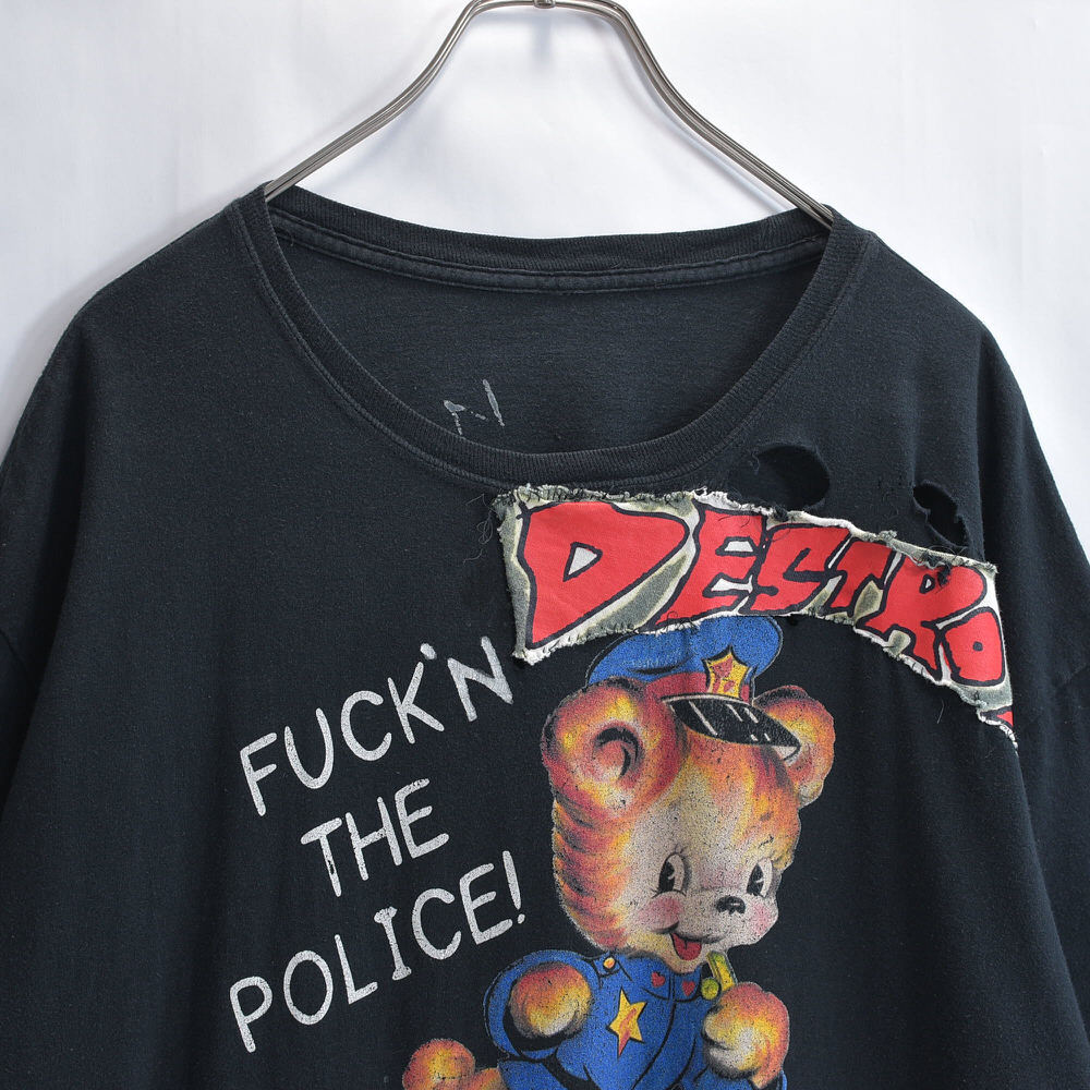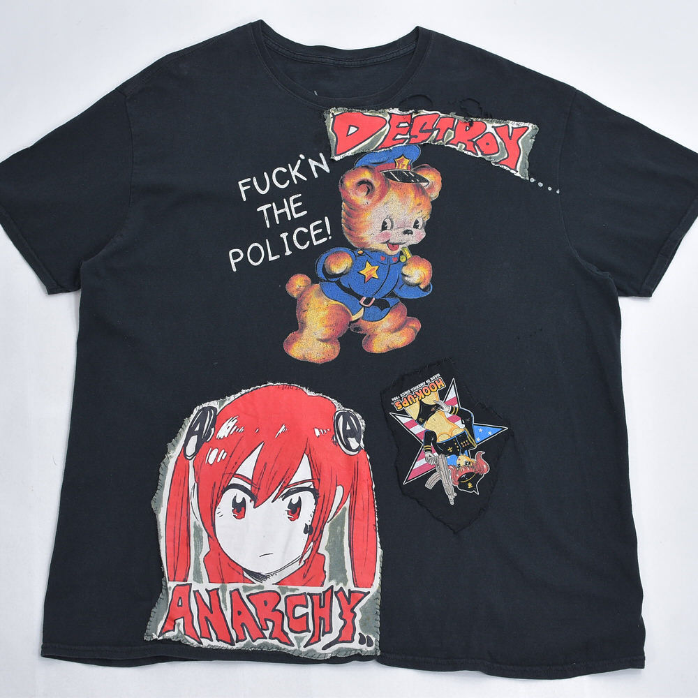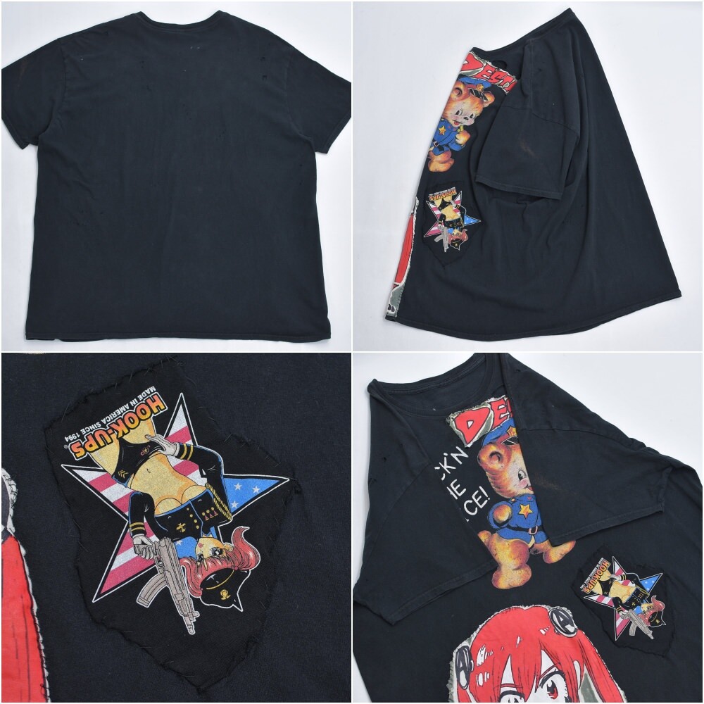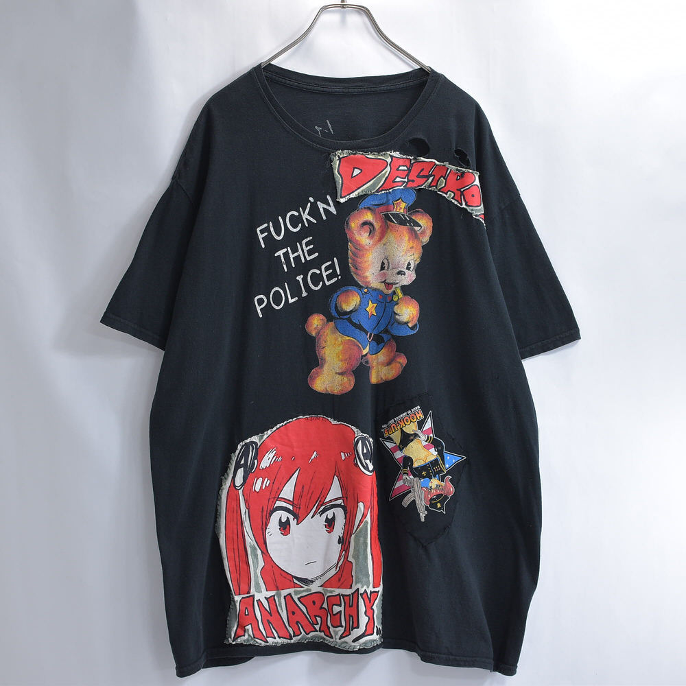90s~ BORO グランジカスタム パッチデザイン DIY Tシャツ クラッシュ ダメージ アーカイブ ヴィンテージ ブラック ビンテージ USA アメリカ古着 メンズXL相当