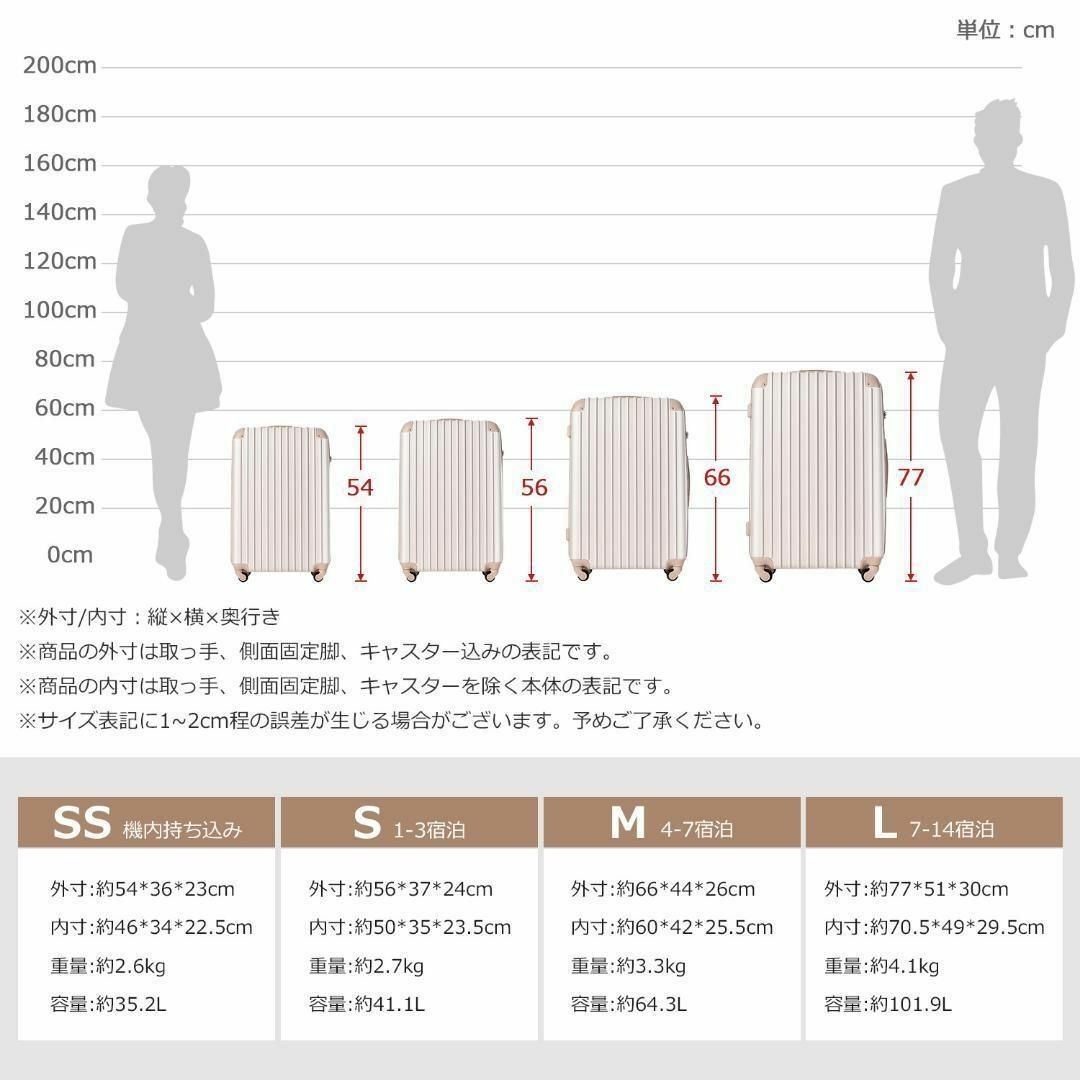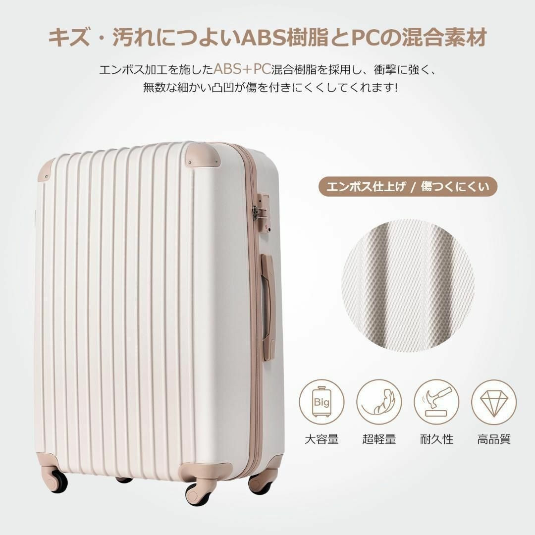 1. 【超軽量】女性でも軽々と持ち上げることができる驚きの軽さ。軽量だから階段もラクラク。女性の方でもらくらく。旅先で重い荷物を持っての移動や、階段の上り下りはシア宮内ですよね。そこで一般的な同サイズの中でも、重量の軽いスーツケースを作りました。軽量スーツケースは海外旅行の、重さ制限にも有利。