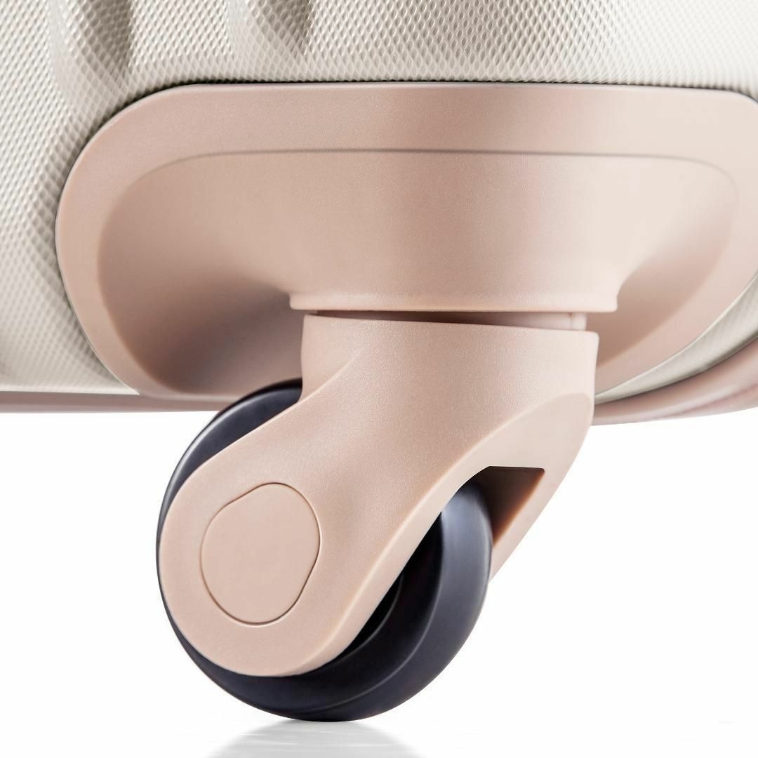2.【傷・汚れに強いエンボス加工】旅先で、ホテルまでの移動や段差など、荷物を入れるのなら、できるだけ軽く、強い素材いい。そんな経験から、エンボス加工を施したABS+PC混合樹脂を採用しました。衝撃にも強く、無数に細かい凸凹が傷をつきにくくしてくれます。