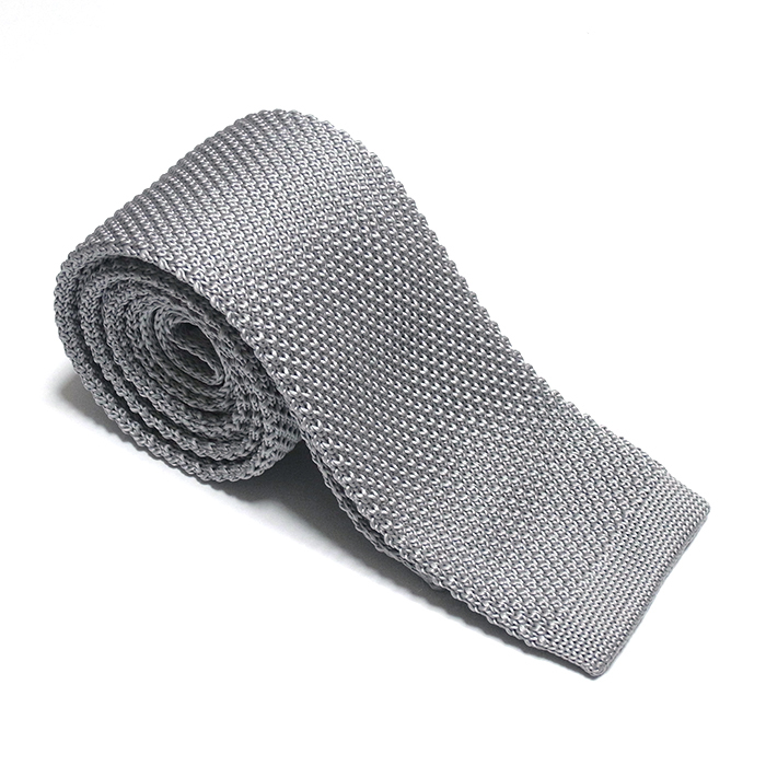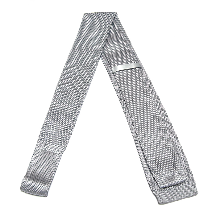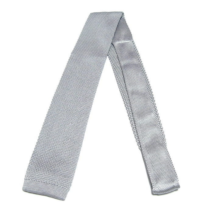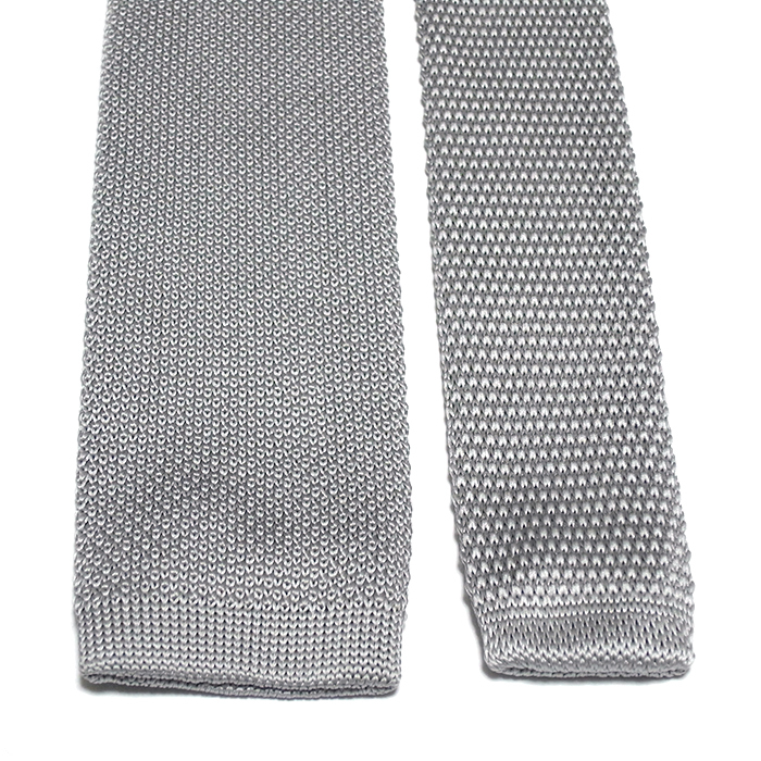 ネクタイ ニットタイ 無地 ライトグレー スクエアエンド ナロータイ tie-0166