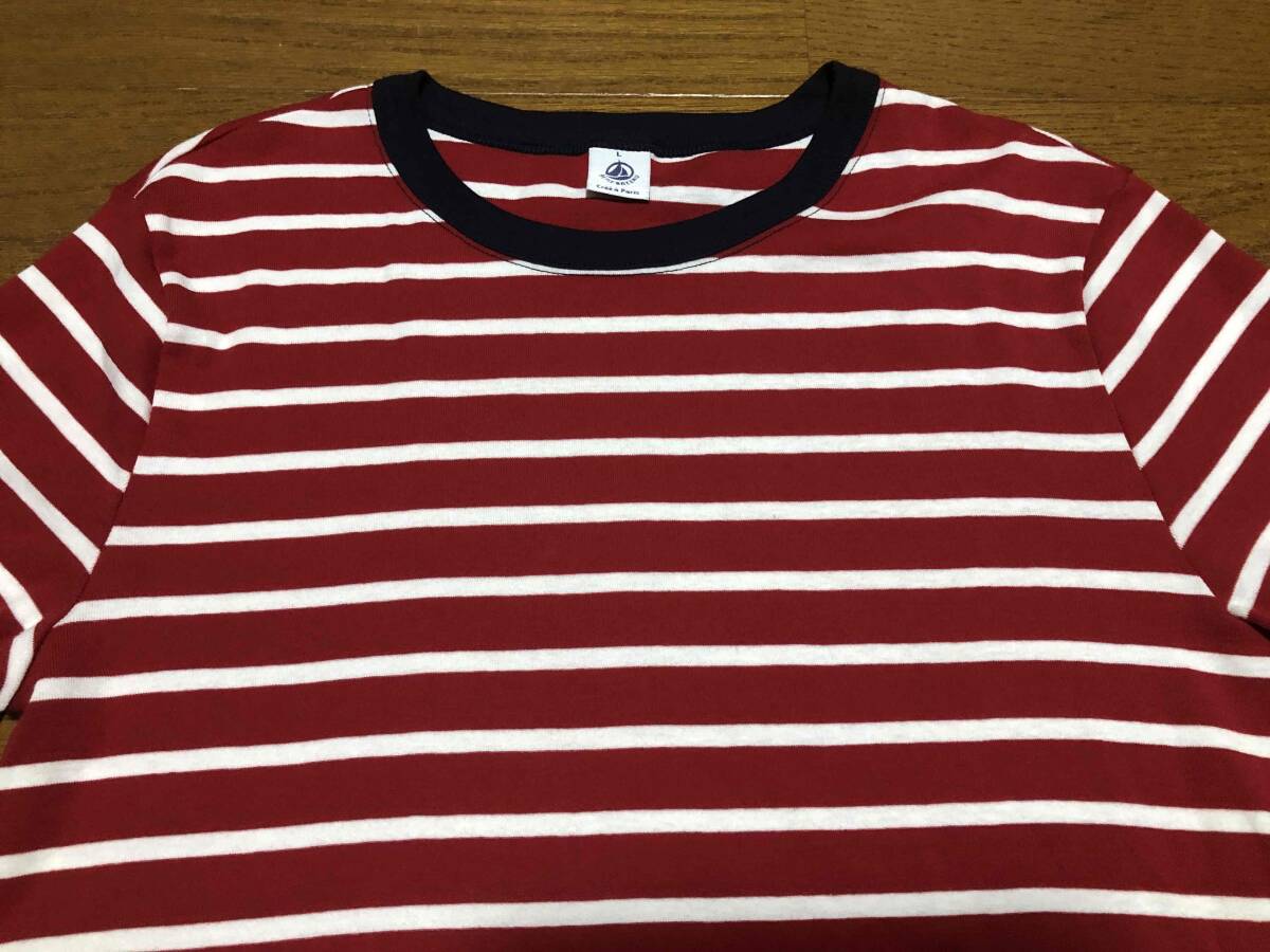 ★即決★PETIT BATEAU プチバトー★半袖ボーダー Tシャツ★赤×白×ネイビー★L★リンガーシャツ★フレンチカジュアル★綿★送料230円★