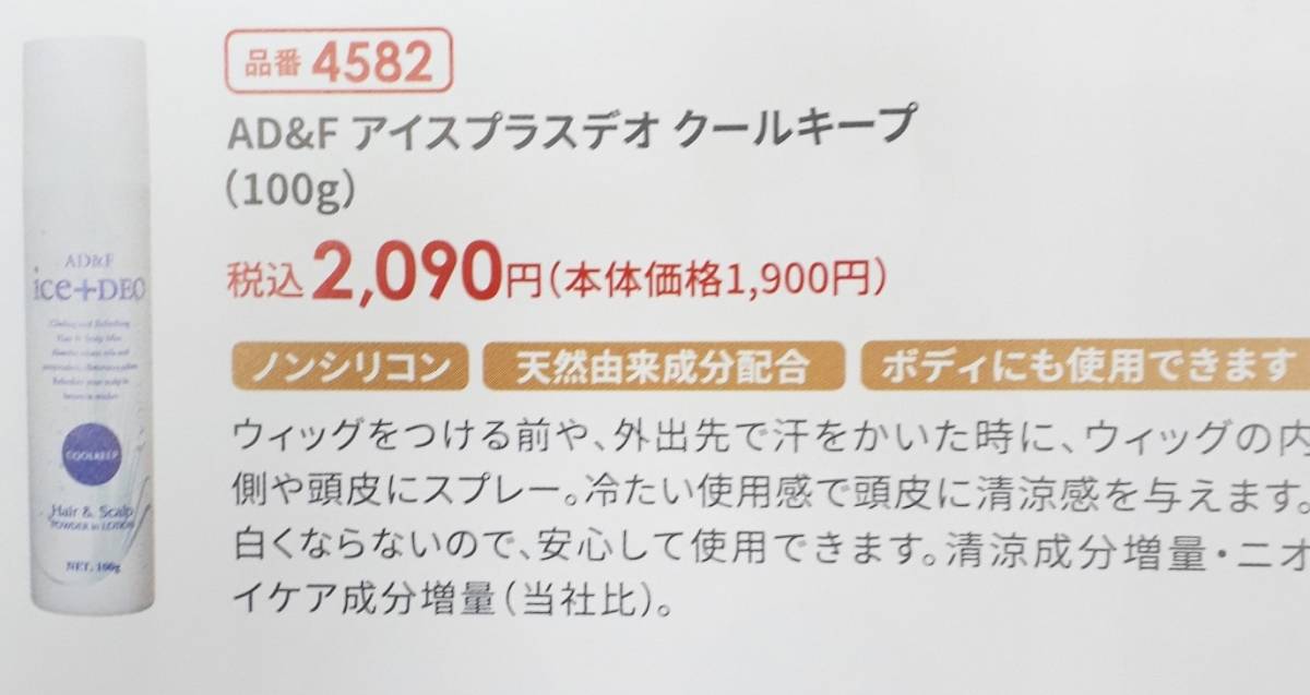 【フォンテーヌ AD&F アイスプラスデオクールキープ #4582 2本セット】 ウィッグをつける前や、外出先で汗をかいた時に、ウィッグの裏側や頭皮にスプレー。冷たい使用感で頭皮に清涼成分増量・ニオイケア成分増量