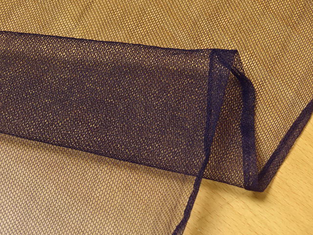 商品は、ナイロン100・チュールメッシュ・紺でございます。