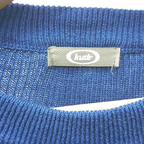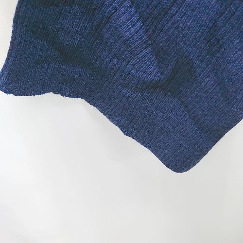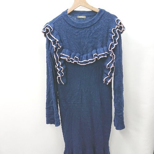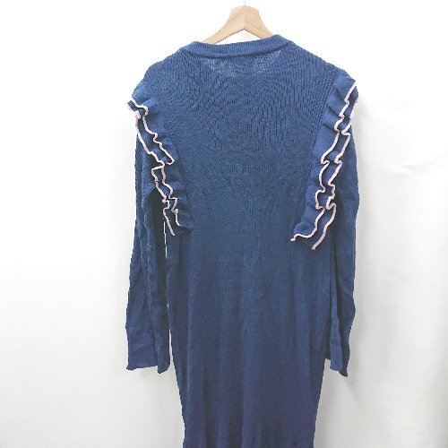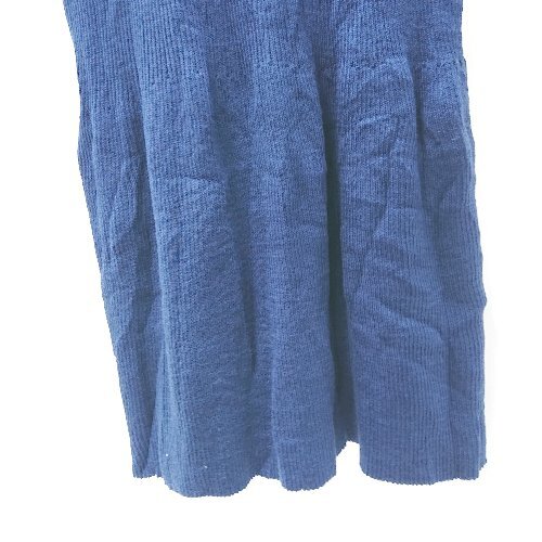 ◇ ⊇ kutir クティール リブニット フリル 長袖 ロング ワンピース サイズM ブルー系 レディース E