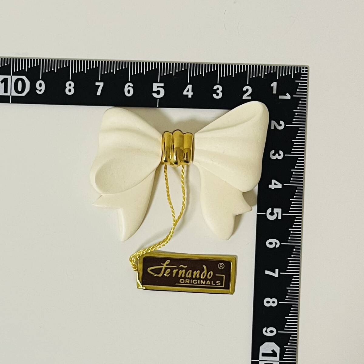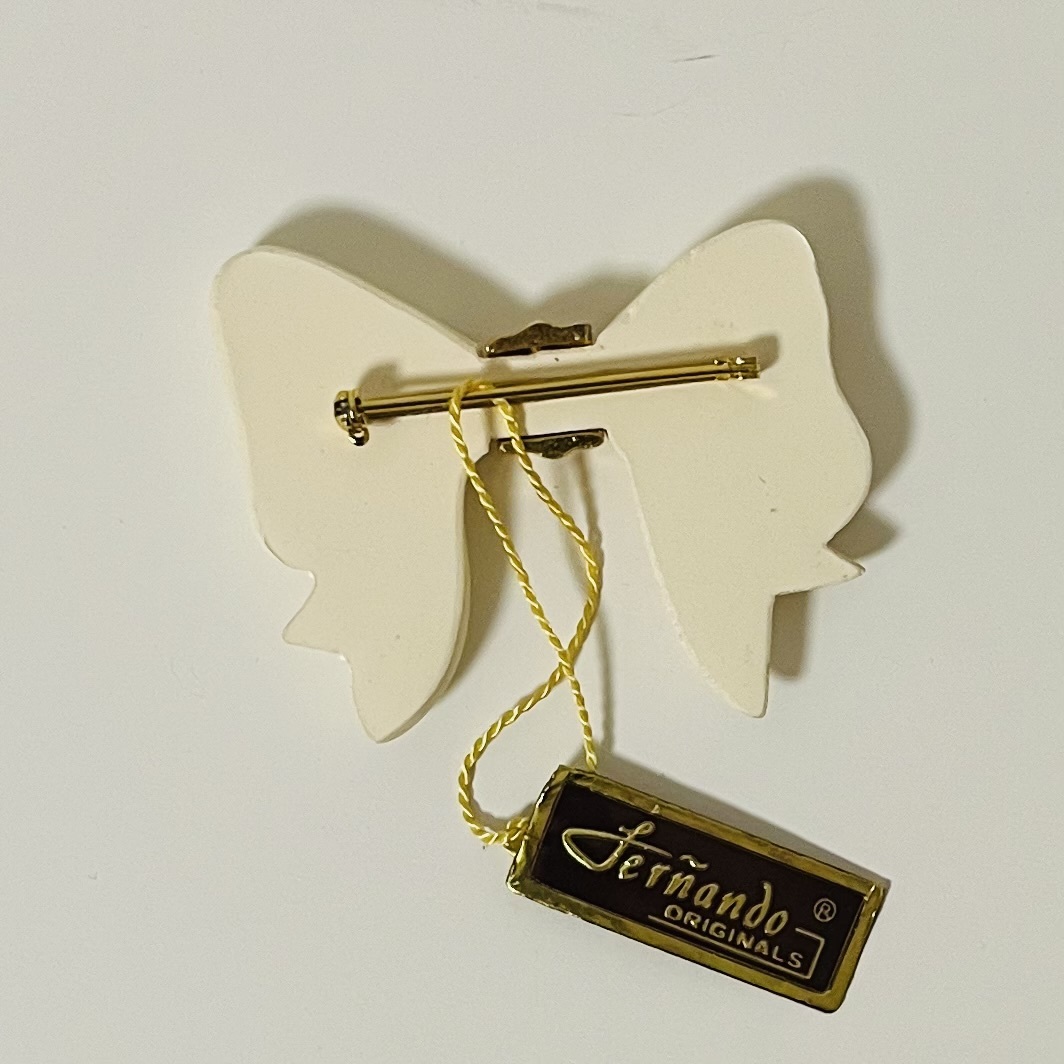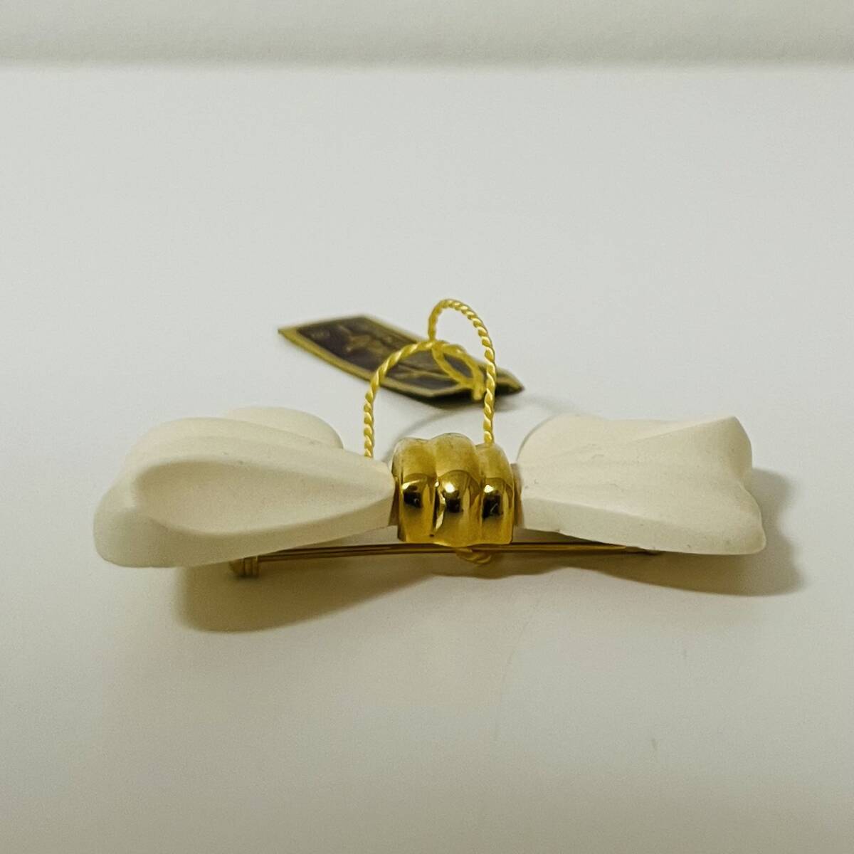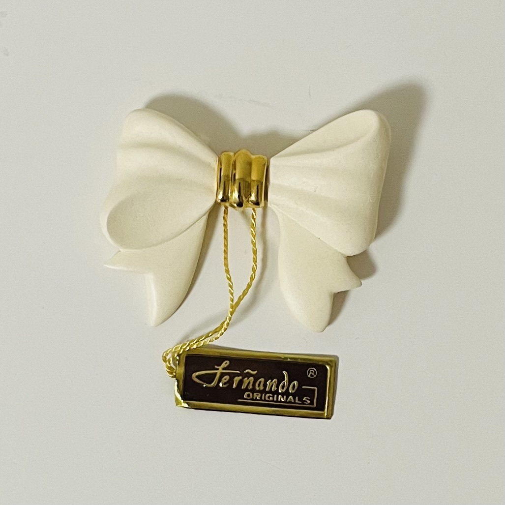 108 アンティーク ビンテージ アクセサリー ブローチ タグ付き 未使用保管品!ゴールドカラー リボン 白 海外製