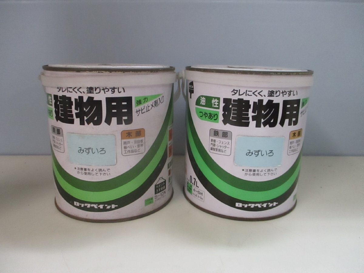 ロックペイント 油性 建物用・0.7L×2缶 商品詳細 【塗り面積(2回塗り)】4~5m2(タタミ約 2.4~3枚) 【乾燥時間】夏 6~8時間 冬 18~24時間 【塗り重ね可能時間】 塗り重ねる時は20℃で20時間以上、10℃で40時間以上乾かしてください。 【うすめ方】 塗料の粘度が高く塗りにくい時は、ペイントうすめ液で少しうすめてください (5~10%が目安です・銀は0~5%) 【用途】 (門扉、シャッター、物置、ロッカー・羽目板、戸袋、板塀、窓ワク、ドア 手すり、さん、工作品など。) ただし、高級家具、テーブルおよび床面を除く。 【特長】 ・ハケ伸びが良く、塗りやすいツヤありの塗料です。 ・タレが少なくインペイ性にすぐれてます。 ・ハケ目がたたず、美しい仕上がりで、耐久性付着性にすぐれてます。 ・有害な鉛、クロム系の化合物を原料として使用していません。 高耐久性・高付着性 合成樹脂調合ペイント・つやあり 特価品のため、缶にサビ・凹み・傷がある場合があります。 ★出品中の商品は、店頭でも販売しております。 店頭で売れた場合には期日に関わらずオークションを早期終了させていだきます (ご入札があった商品は直ちに店頭からお下げしておりますが、稀に入れ違いで売れてしまう場合もございます。ご了承くださいませ) 当社のオークションは返品・交換・キャンセル等は一切お断りさせて頂いております。充分ご検討の上ご入札下さいませ。 | |