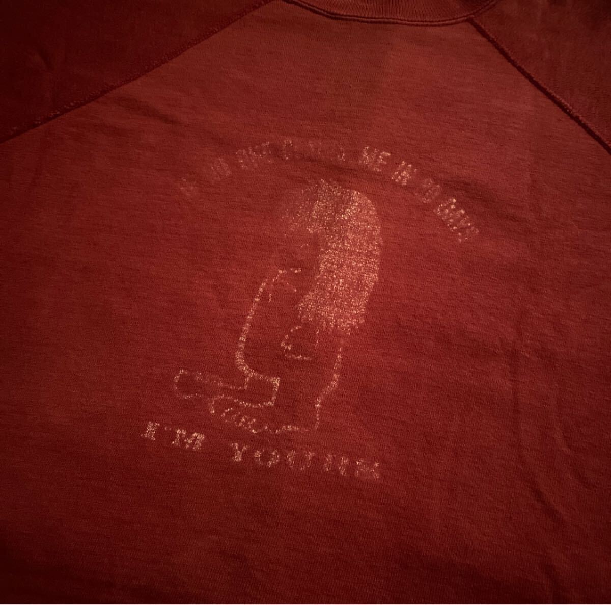 Fade 50s 60s Monster リブ長 スウェット の出品になります。サンフェイドした赤ボディにモンスタープリント。50s~60s辺りのヴィンテージスウェットのプリントではモンスターはトップピースでしょう。オリジナルならではの雰囲気はヴィンテージファンには堪らない逸品かと思います。また、ディティールも丸胴ボディにラグランスリーブ、リブ長とヴィンテージスウェットがお好きな方でしたら拘りのポイントもしっかり押さえております。古い年代のスウェットにはなりますが身幅、着丈共に申し分ありません。国内外問わず枯渇、高騰傾向にあるヴィンテージスウェット。モンスターとなると尚更でしょう。是非この機会に御検討下さい。