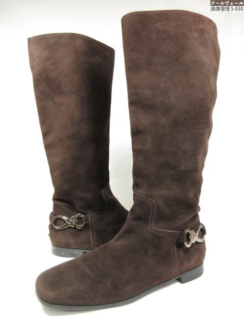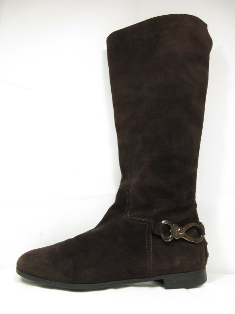 美品 【トッズ TOD'S】 スエードレザー プレーントゥ ロングブーツ 婦人靴 (レディース) size36 ダークブラウン系 ◇30LZ4950◇