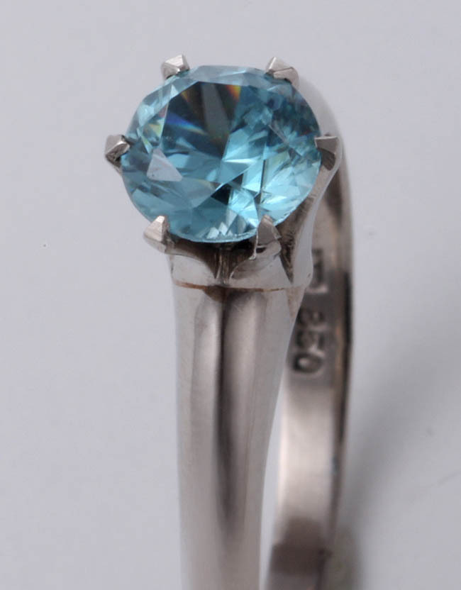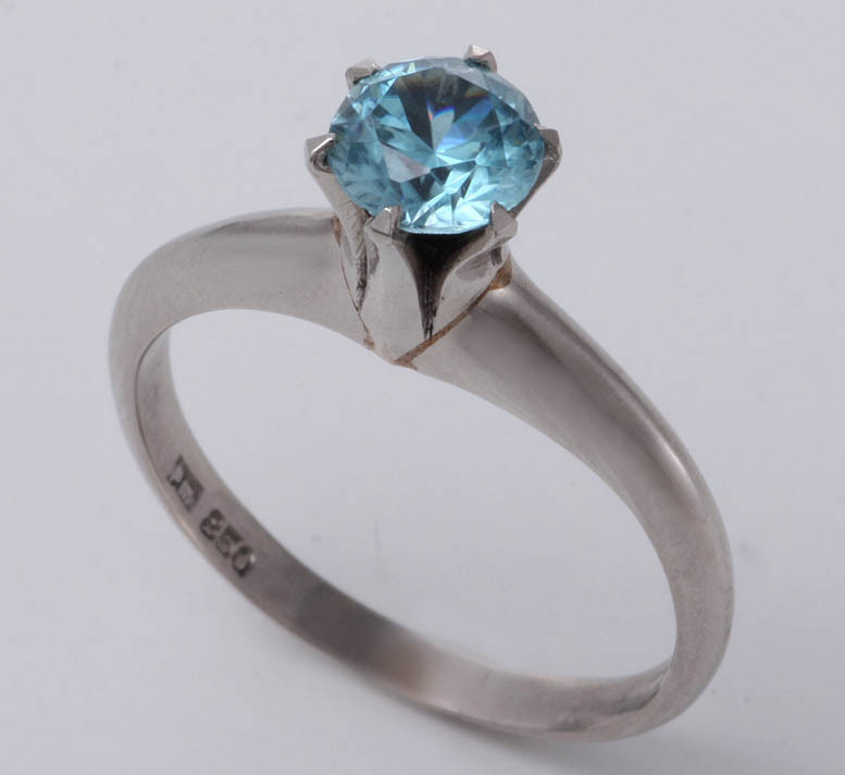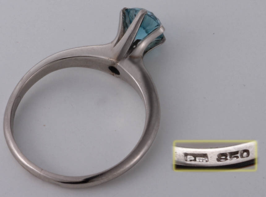 コメント | [[全ての商品に品質保証カードが付きますのでご安心ください]] 深いブルーが美しい天然ジルコンです。 立て爪の形状を考えると40年ほど以前に作られたリングだと思われるビンテージ品です。 プラチナの品位刻印も Ptではなく、Pm850になっています。 |