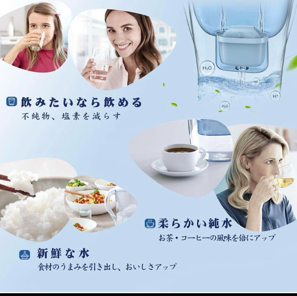 ブリタのポット型/タンク型浄水器の全モデルにご使用いただけます。(クラシックタイプを除く)、カートリッジ1個=総ろ過水量:150L、交換目安:4週間に1回 (1日5.3L使用の場合)
