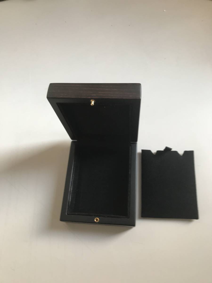 ネックレスのケースです。MDF(合成版)にローズウッド天然木をラミネートした構造です。