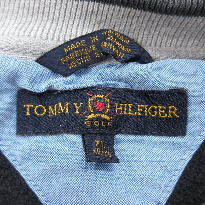【商品名】 XL★古着 トミーヒルフィガー 半袖 ブランド ノースリーブ メンズ 90年代 90s ワンポイントロゴ クルーネック 黒