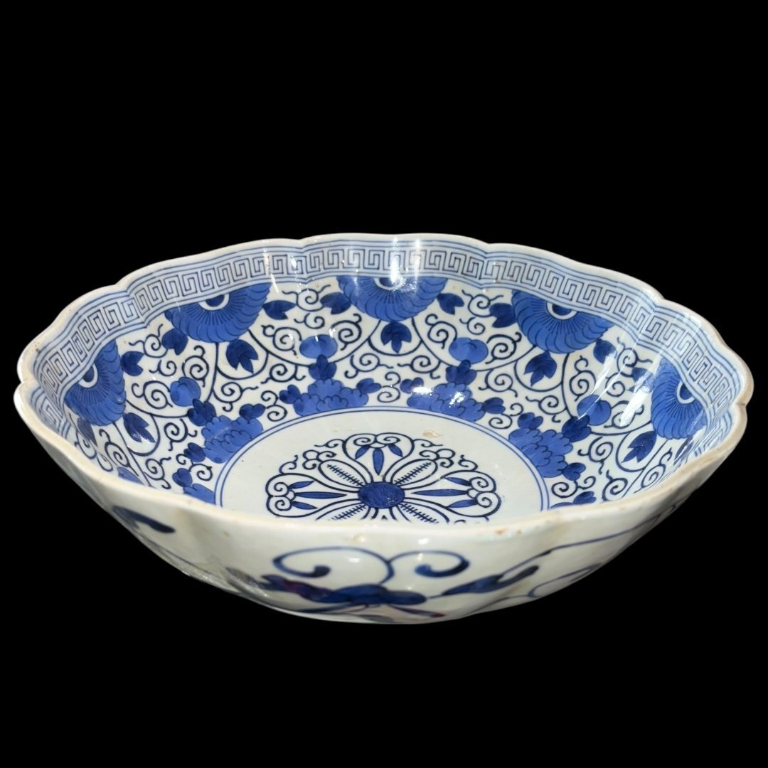 青白磁 古美術 大鉢 深鉢 唐草 景徳鎮 染付 時代物 直径28cm 商品の質問,そのほか落札関連のご質問等は070-3143-0769までお願い致します。