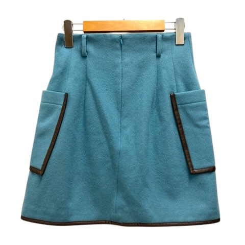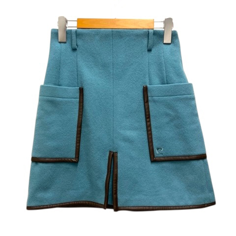未使用品 フレイアイディー FRAY I.D × pierre cardin スカート 台形 ウール パイピング ロゴ刺繍 ミニ丈 0 青 ブルー レディース