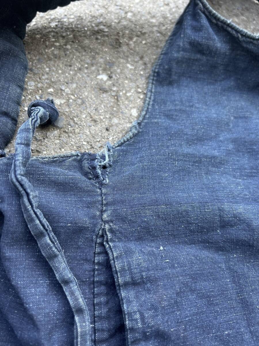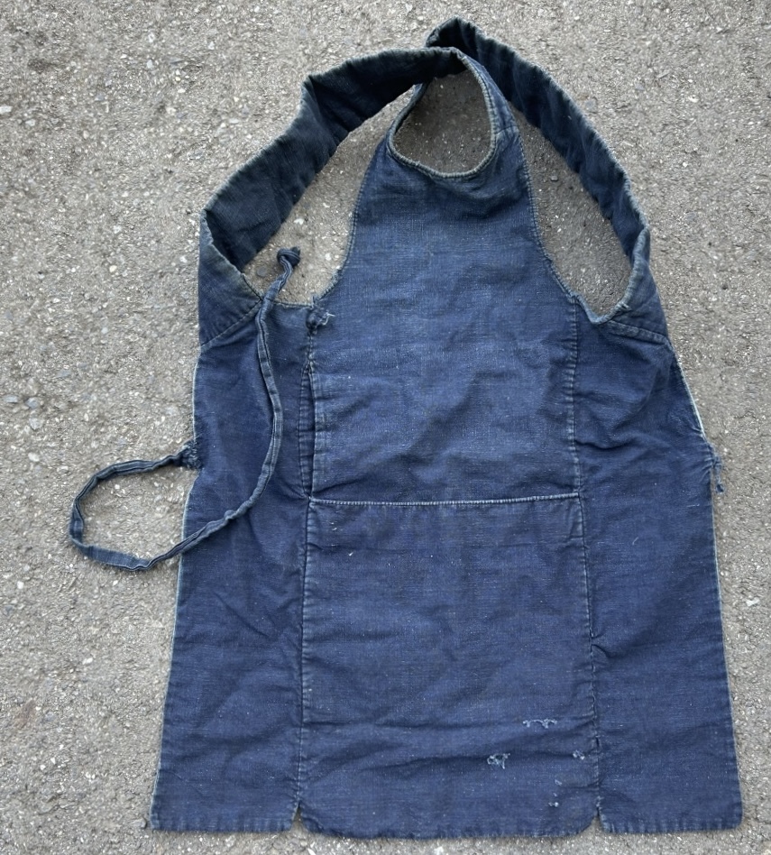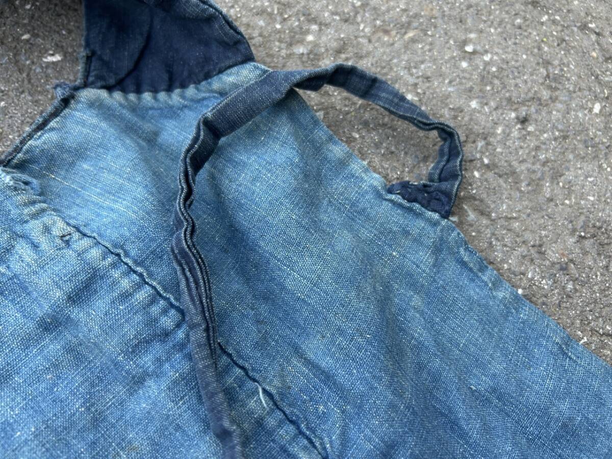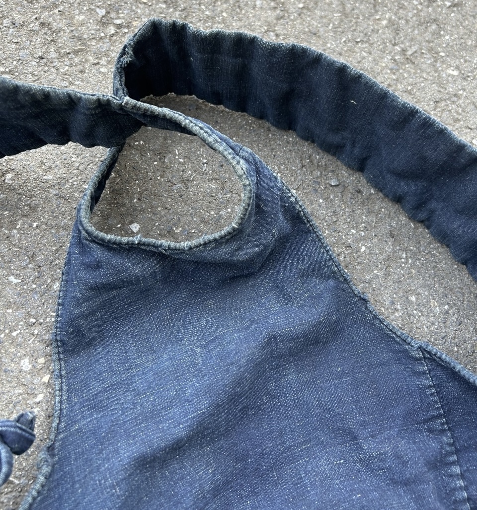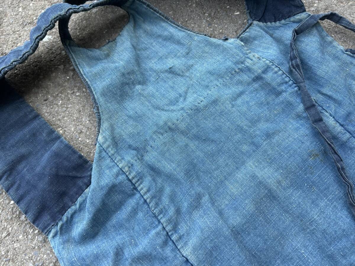 - 抜群の色味 ミシンステッチ 腹掛け 前掛け 古布 藍染 浅葱 木綿 ジャパンビンテージ 日本の古い服 JAPAN VINGTAGE 50s60s -